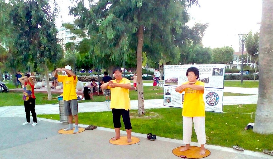 一名越南女士看到学员随着舒缓的音乐在演示一至五套功法时,兴奋的心情溢于言表,她说:“哎呀,终于在这儿找到你们了,我在其他国家得法已经一年半了,苦于不知道什么时候才能联系上你们,今天总算把你们找到了。”说着加入了炼功的行列。
