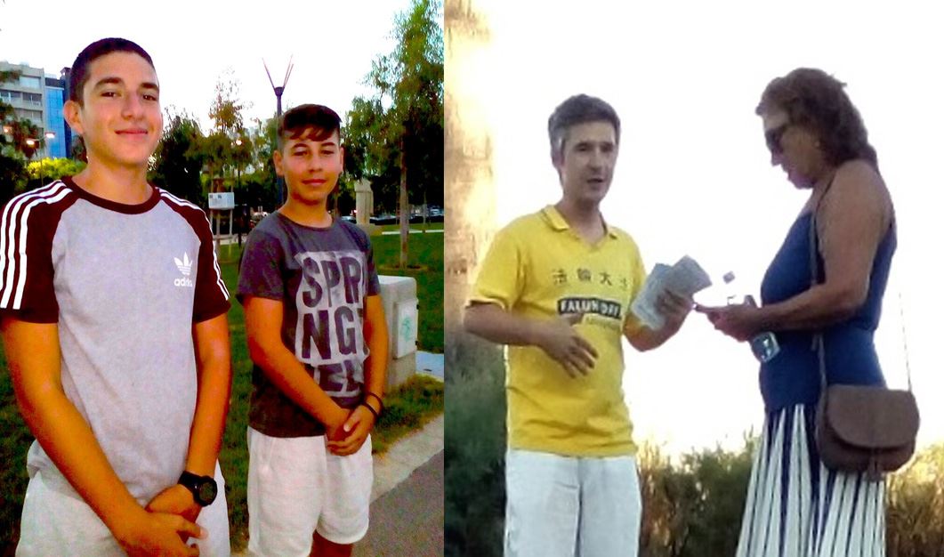 ![]() 图2:左图,前来学功的塞浦路斯小男孩。右图,学员在讲真相 |