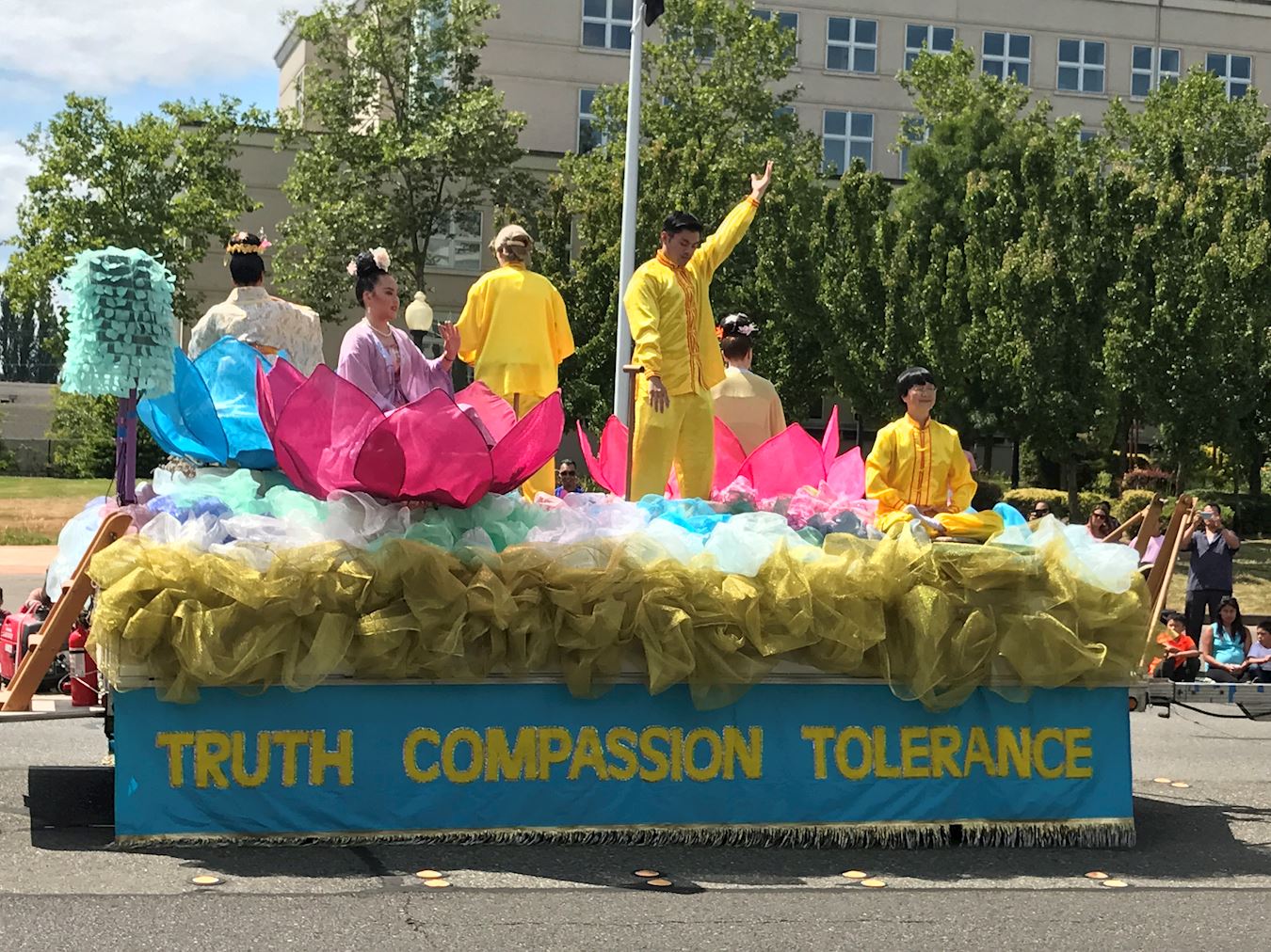 ![]() 图1:在肯特市丰收节游行中的法轮功学员的花车 |