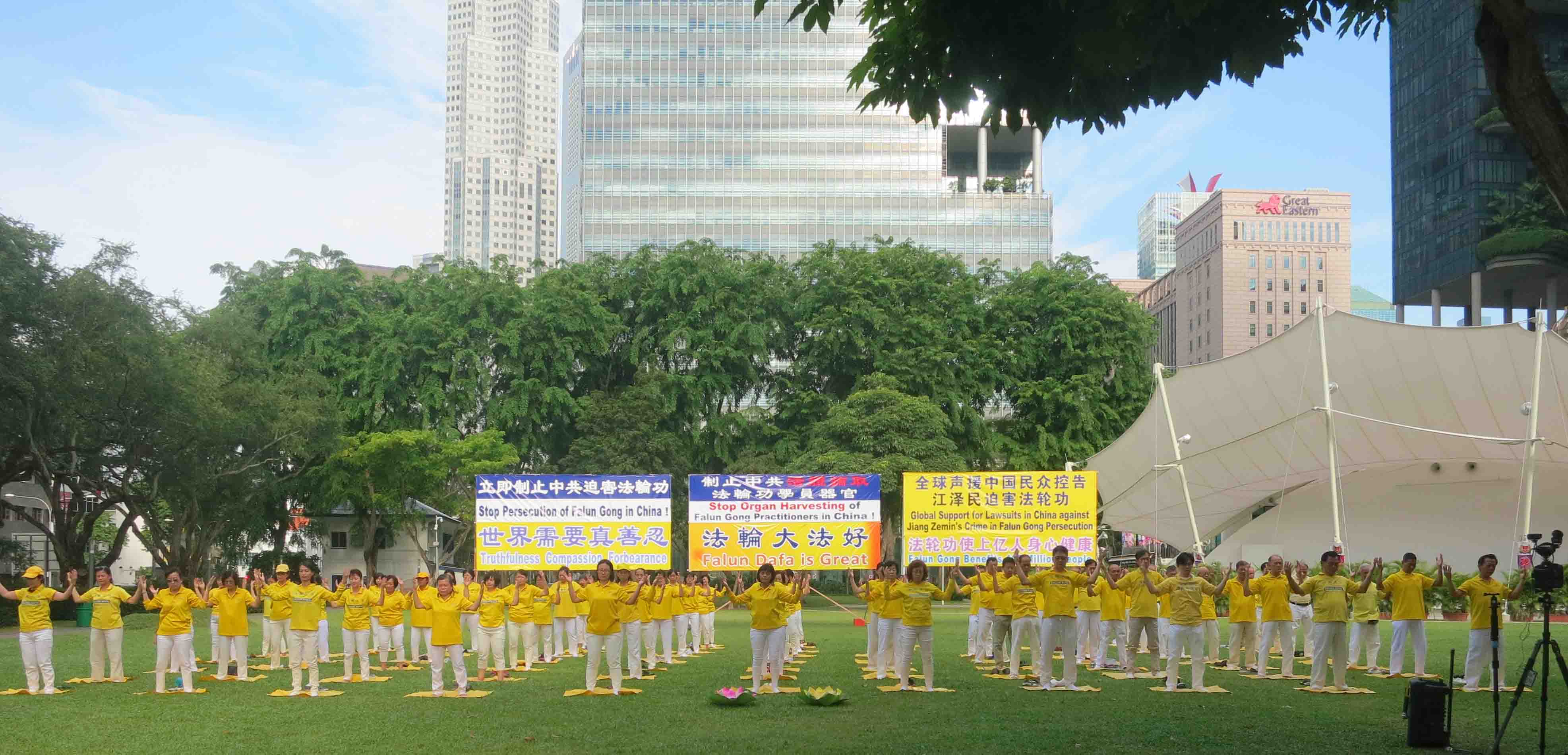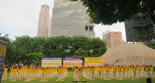 ![]() 图1~4:二零一七年七月十七日,新加坡法轮功学员在芳林公园举办反迫害十八周年纪念活动。图为学员们正在集体炼功。 |