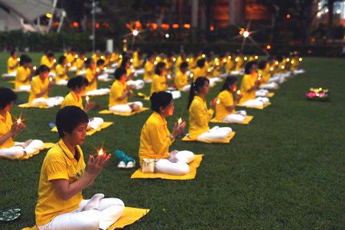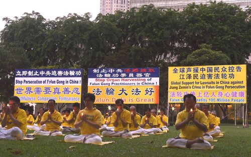 两位新加坡本地大学生被公园的烛光所吸引,走近看个究竟。Rachel原以为只是打坐,提升身心灵健康的运动,却意外发现是法轮功学员在悼念被迫害致死的同修。她与同学都在征签表上签字。