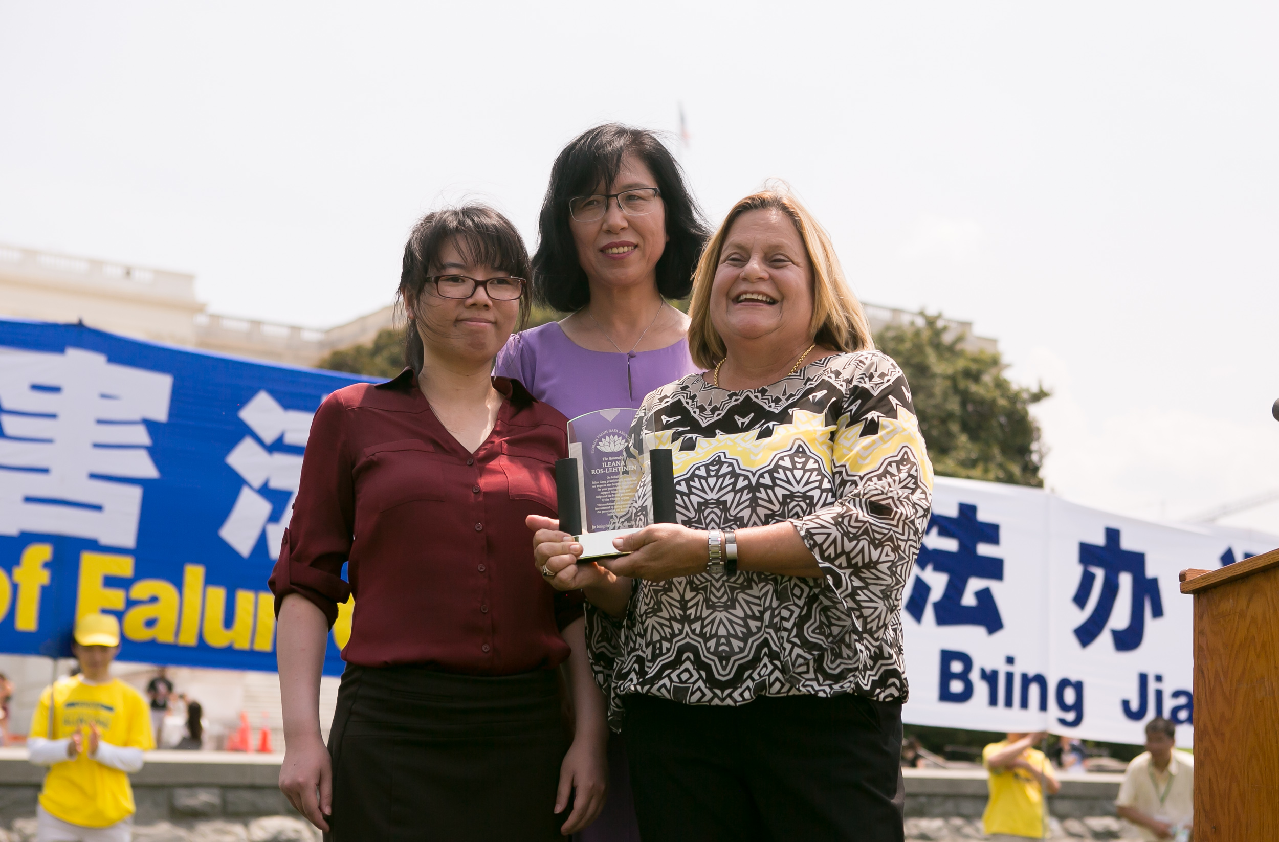 她呼吁美国政府与法轮功学员站在一起,并认可这些为自由而抗争的人们是美国真正的同盟。