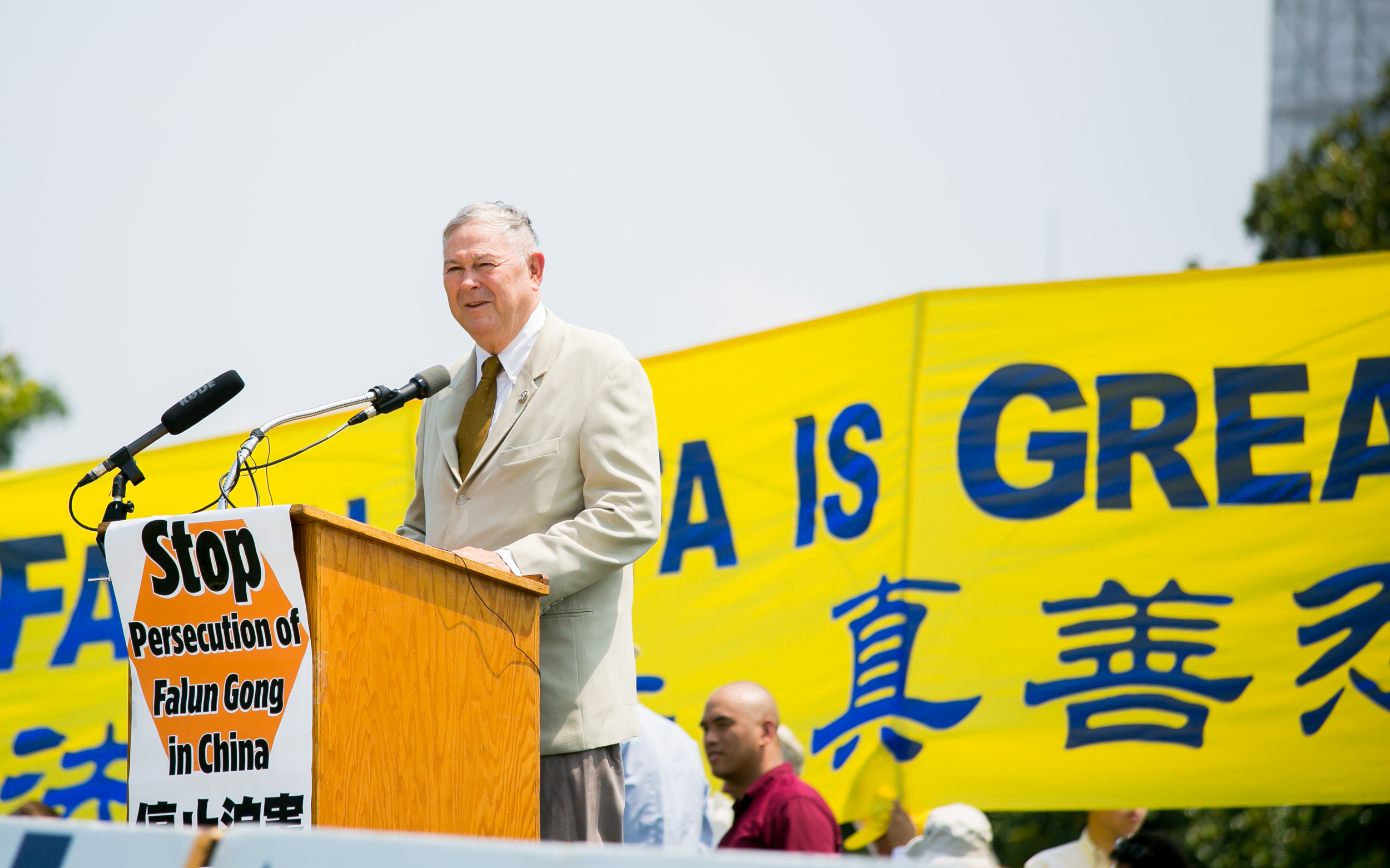 共和党资深众议员、众议院外交事务委员会资深成员达纳•罗拉巴克(Dana Rohrabacher)说: “你们很重要。你们的每一个人都很重要。你们每一个人都参与了一个历史使命。你们的使命不仅是推广法轮功真善忍的理念,也是确保世人保持和平。”他说,中共也清楚,它并非哲学理论上的共产主义,而是一群恶徒控制了一个拥有大量土地面积的国家和这个国家的大量人口。
