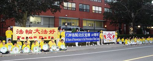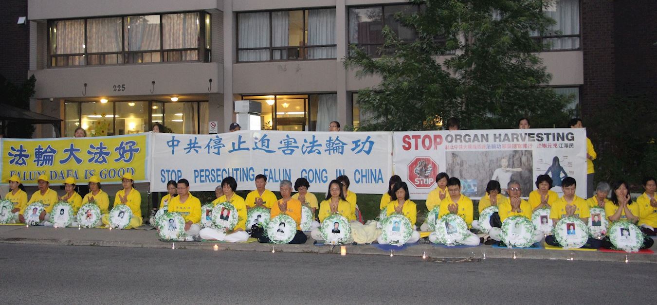 十八年后,二零一七年七月二十日晚,加拿大多伦多法轮功学员在中领馆前烛光守夜,悼念十八年来被中共迫害致死的中国大陆法轮功学员,呼吁各界支持善良、共同结束中共对法轮功的迫害。