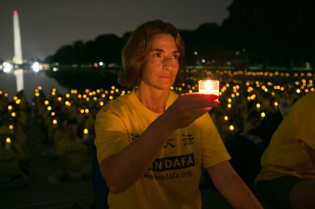 来自马里兰州的桑迪·甘泽和她的女儿被烛光夜悼的感人场面震撼。甘泽说,林肯纪念堂是个非常有份量的地方,很多事件都是从这里开启。看到法轮功学员在这里集会,真希望他们也能给中国带来改变,制止那里的迫害。