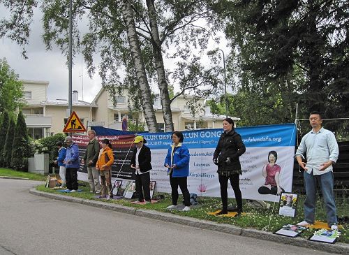 芬兰法轮功学员中领馆前抗议中共迫害(图) 【明慧网】