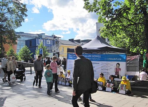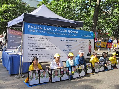 【明慧网二零一七年七月二十二日】一九九九年七月二十日,中共发动了对法轮功的全面迫害,也引发全球法轮功学员反迫害、讲真相活动。二零一七年七月二十日,在法轮功学员反迫害十八周年的当天上午,芬兰的法轮功学员在中领馆前和平抗议;下午又来到首都市中心举办悼念活动,呼吁社会各界共同制止中共的罪恶。