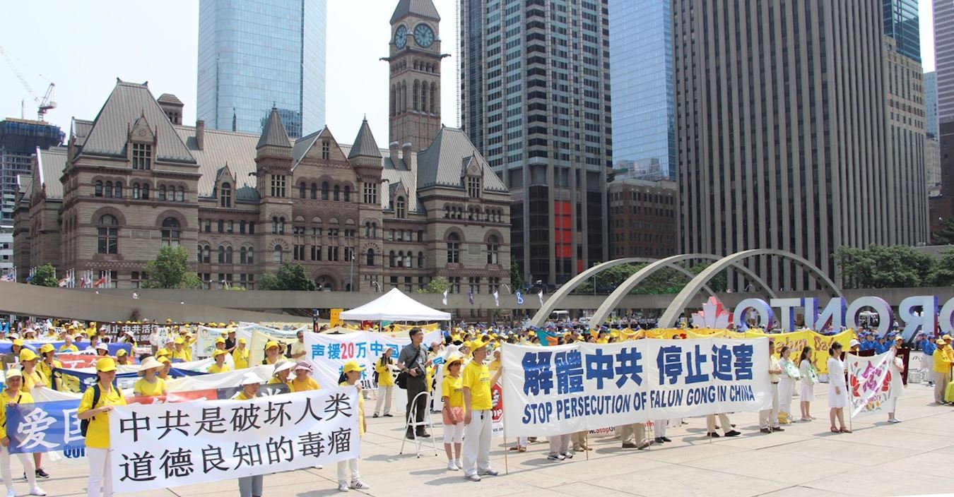 ![]() 图1~2:法轮功学员在多伦多市政厅的内森菲利普斯广场举行反迫害集会 |