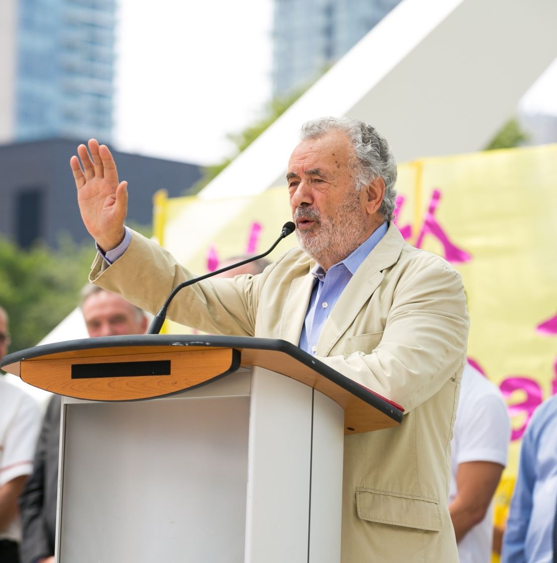 前加拿大参议员迪尼诺(Consiglio Di Nino)是国会法轮功之友创始人之一。他发言说:“对我来说,来参加这活动是一种荣幸。我非常尊敬你们的勇气,能做这样的事,站在多伦多市政府前,要求中共当局停止迫害法轮功。我们应该保证,这信息绝不允许消失。”