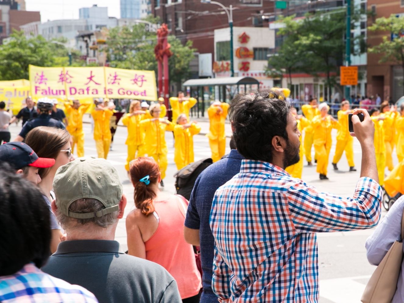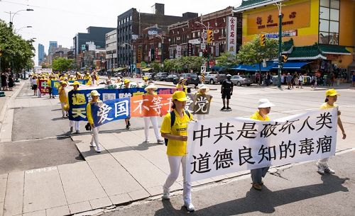 来自山东的陈先生在加拿大已经定居了十几年。陈先生从加拿大的温尼伯格市搬到多伦多刚一个月,在游行现场看到法轮大法队伍,不停地用手机给队伍照相。他说:“法轮功是一个锻炼身体的好功法,既然是一个功法,就不会象国内宣传的那样。我知道在中国,人权问题和许多其它的事情,我们都没有说话的权利的。在这里,我看到有这么多的法轮功学员,我觉得很震撼!我在YouTube上看过法轮功的一些视频,我看到当法轮功学员在天安门广场刚拿出来真相横幅,就看到一堆人围上去对法轮功学员拳打脚踢的。我知道在中国这个一党专政的国家,发生这种事情是司空见惯的。而且国内搞网络封锁,我和我的朋友在国内都是通过‘翻墙’才看到国外的一些事实真相的。”