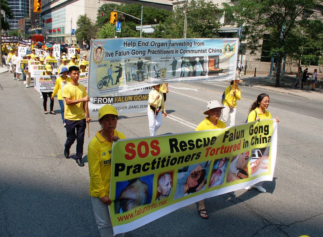 法轮功学员Alice黄是这次游行的协调人之一,她介绍说:“加拿大多伦多警察局知道我们每年都会有7.20反迫害活动。今年他们只派了四位警察来维持上千人的游行,而且是在市中心最繁忙的街道。他们把所有的十字路口都封路,所以游行队伍一刻都没停止,畅通无阻走完全程。今天只分配四位警察带队,因为他们非常清楚法轮功学员的游行是和平与平静的。”
