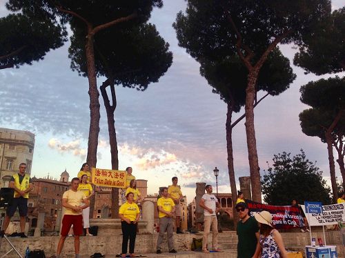 ![]() 图1~2:意大利法轮功学员在威尼斯广场举办七二零反迫害活动 |