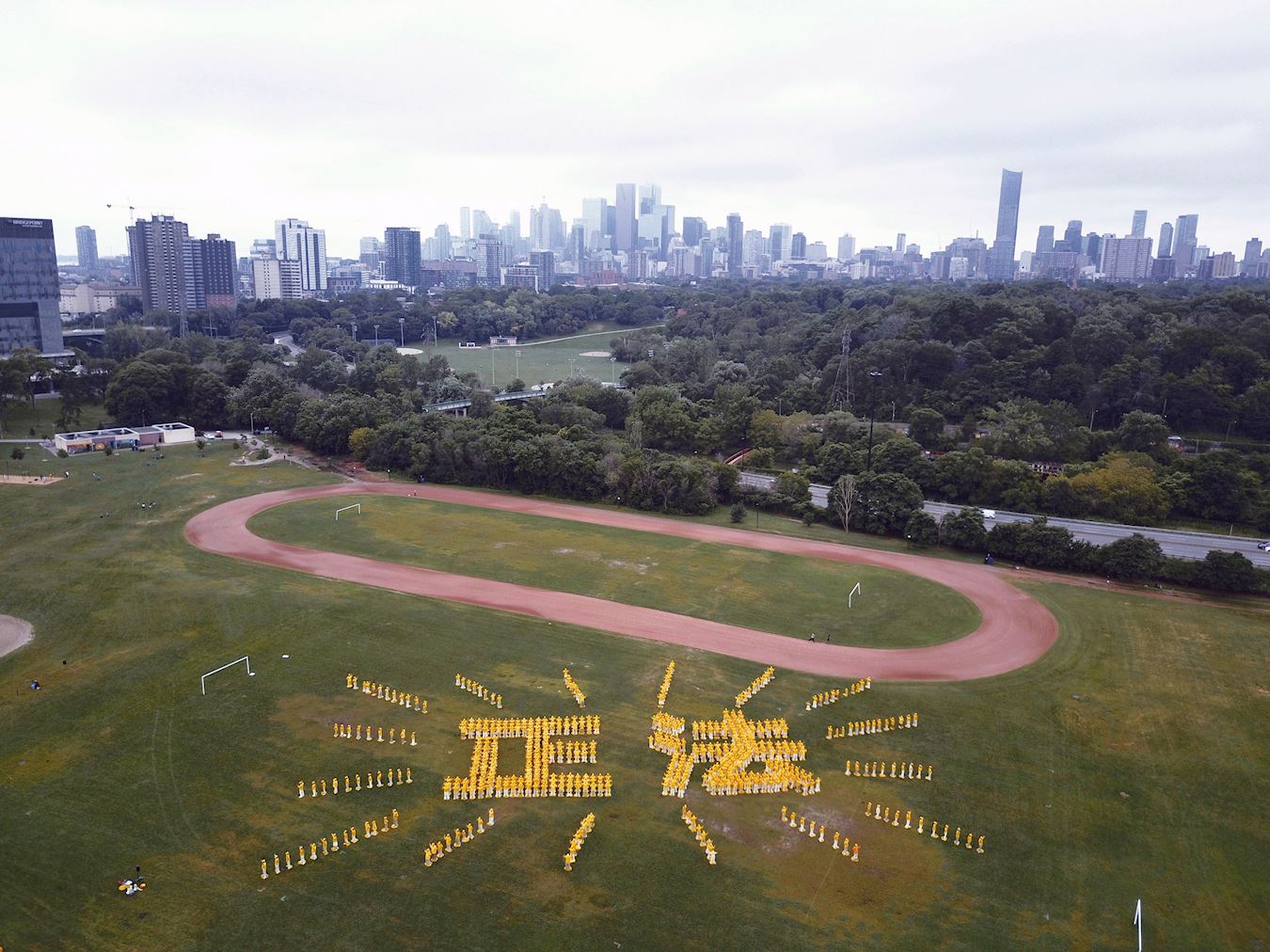 ![]() 图1~2:2017年7月23日上午,法轮功学员在多伦多市的Riverdale公园排出“正法”两个辉煌大字。 |