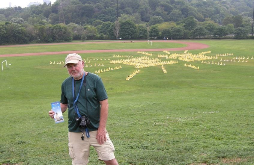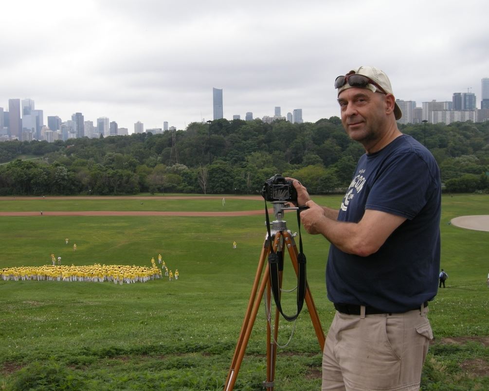 Peter Coney先生在排字现场公园旁居住,在家里从窗户中看到公园里有很多人在搞活动,就赶快拿上相机从家里跑出来,到现场给排字队伍照相。Coney先生说:“法轮功学员的排字活动看起来非常祥和,非常平静,我看到他们在打坐和炼功。我非常喜欢法轮大法的‘真善忍’法理,这个法理非常谦恭有礼,非常体谅人,我觉得每个人都应该遵从这个法理。中共一贯使用老一套整人伎俩来对待法轮功和其他团体,这一套整人和迫害行为应该立即停止,中共应该还给人们修炼和信仰的自由,就象在北美这样。”