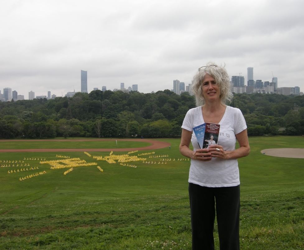 Fides Krucker女士在多伦多是一位歌唱家,从现场经过时被壮观的排字场面所吸引,停下来给排字的法轮功学员照相。Krucker女士说:“法轮大法的‘真善忍’法理太棒了,这对我们加拿大来说太重要了,因为加拿大是个多元化文化的国家,我觉得‘真善忍’法理使得来自于各种不同文化背景的人在一起和平相处成为可能,所以我非常地喜欢。”