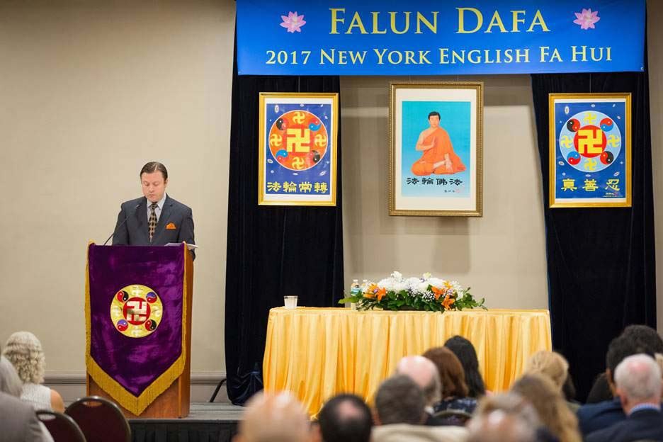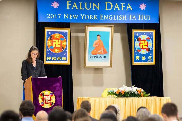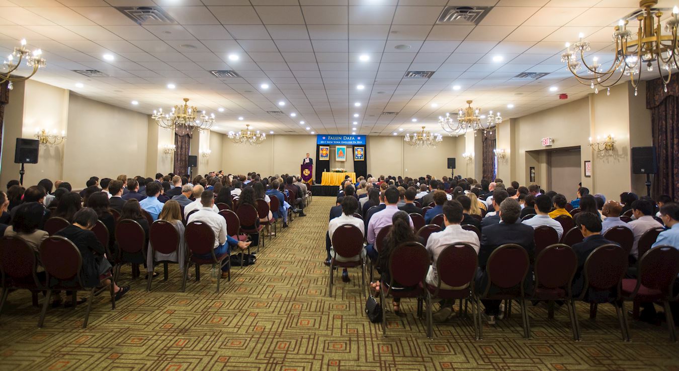 ![]() 图1-2:用英文召开的修炼心得交流会在纽约举行 |