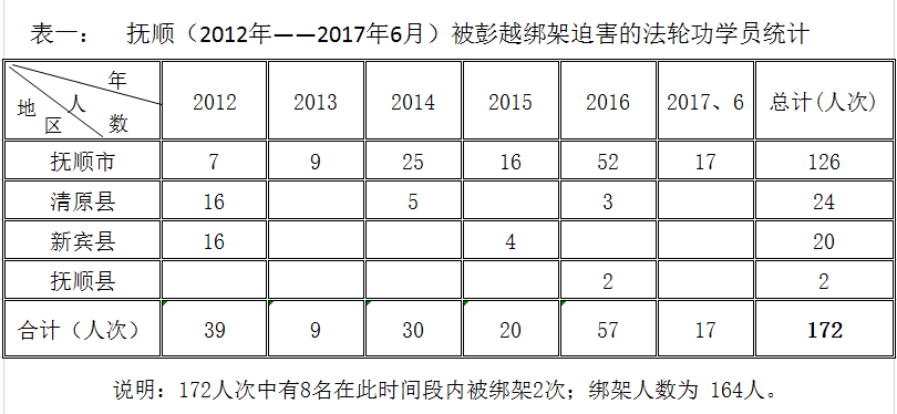 不完全统计:近五年来,被彭越直接迫害的法轮功学员有164人,其中有8人被绑架2次;抢劫、勒索现金:九十三万五千七百九十元;被非法批捕判刑51人。