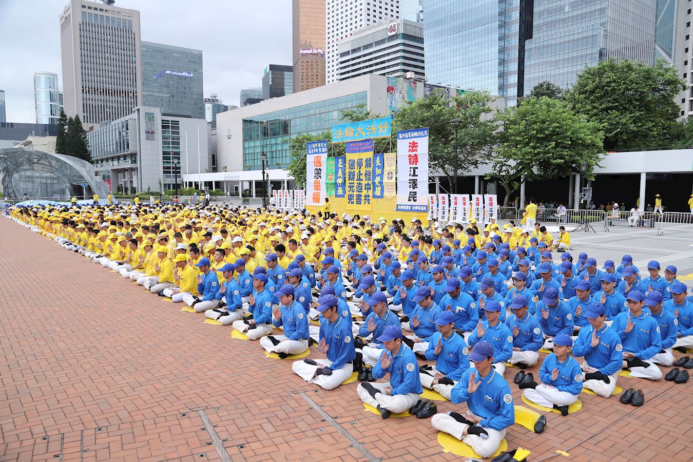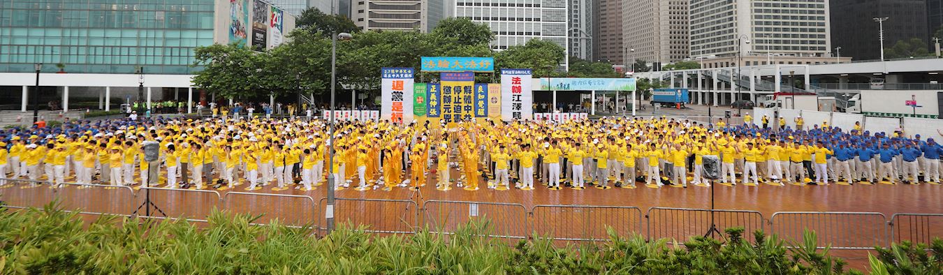 二零一七年七月二十三日,来自香港及海内外一千多名法轮功学员在港岛区举行纪念和平理性反迫害十八周年的集会游行。