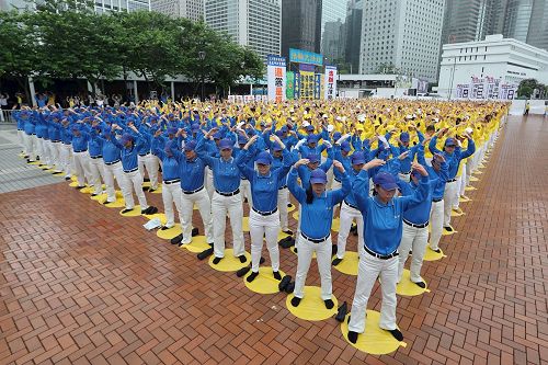 ![]() 图3~5:上千名法轮功学员在中环爱丁堡广场上集体炼功。 |