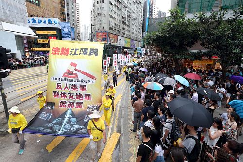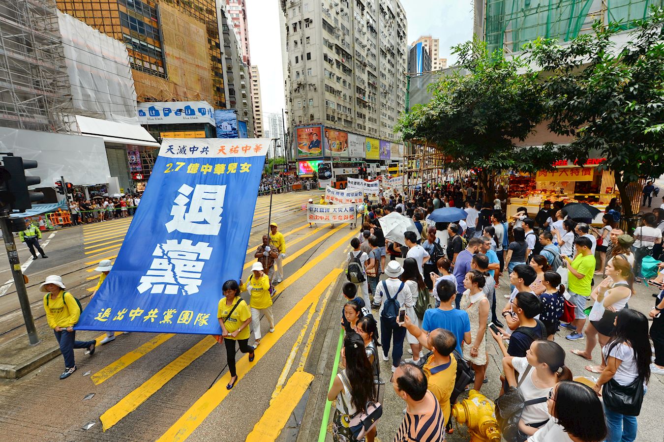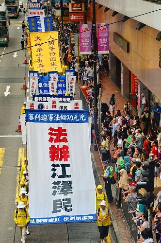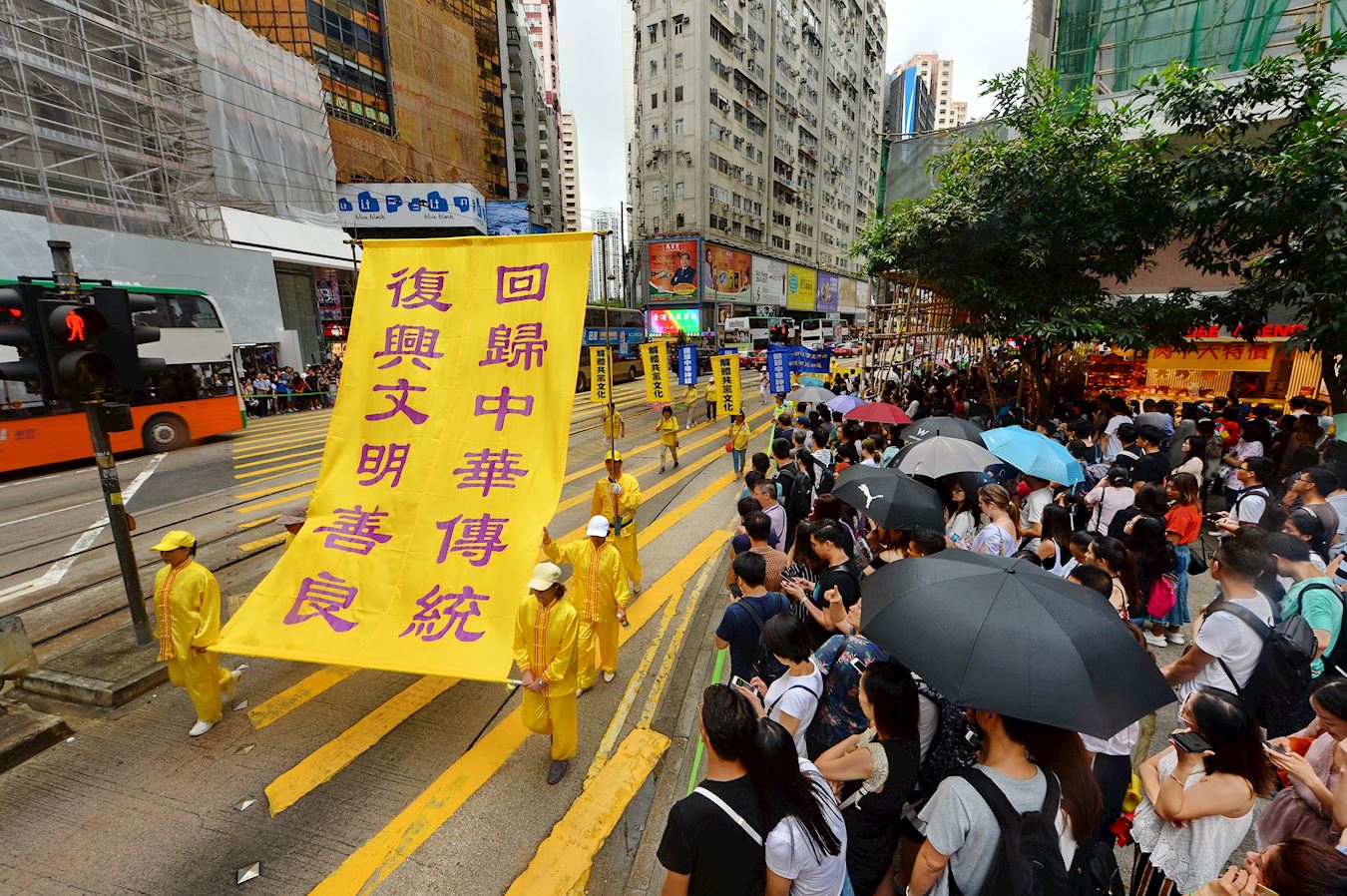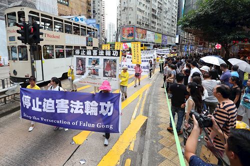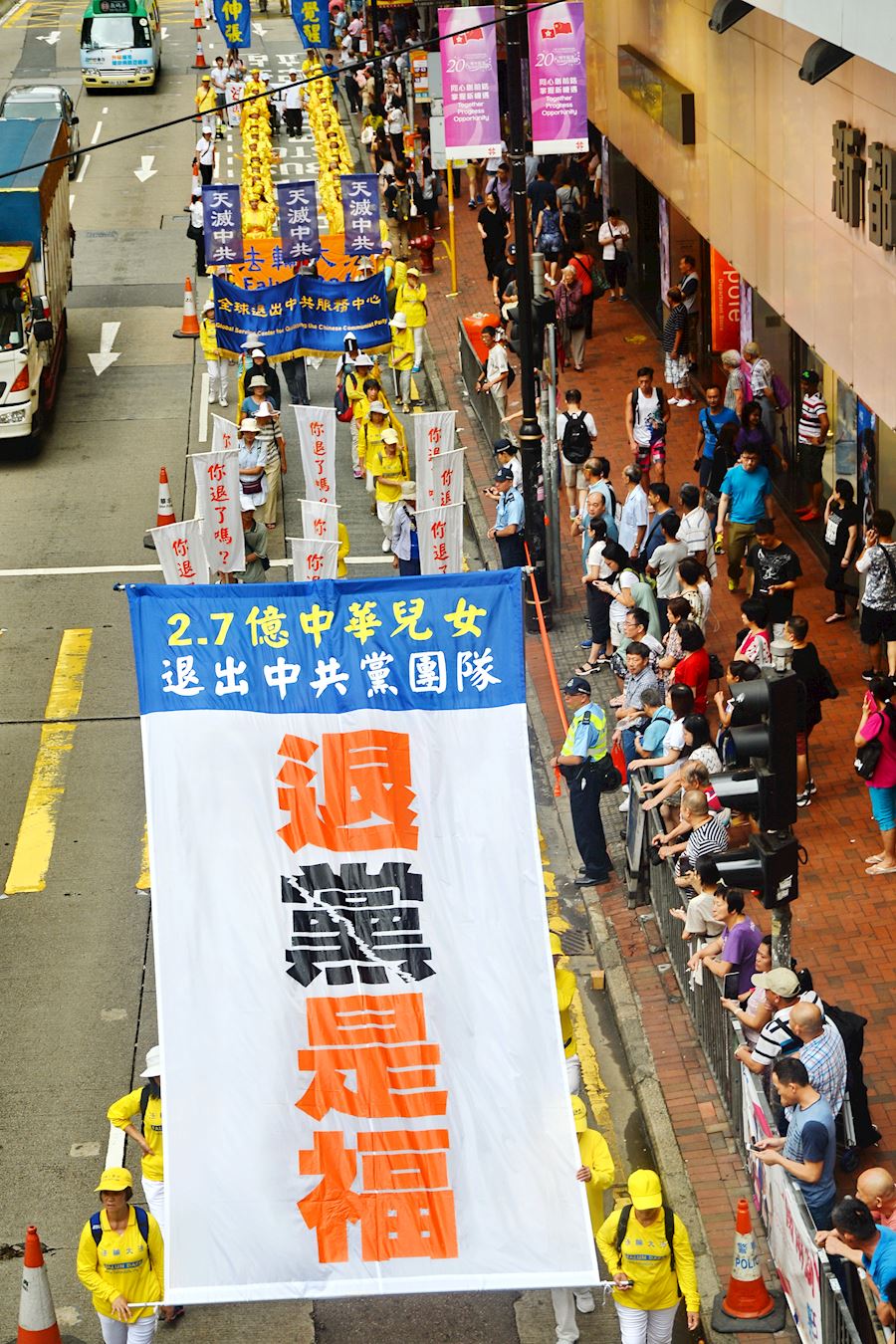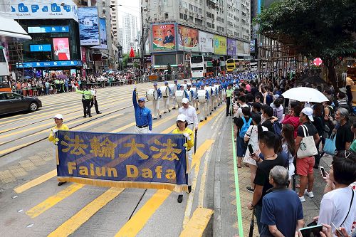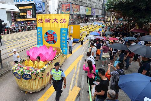 游行队伍在天国乐团引领下,从北角码头起步,途经铜锣湾、湾仔、中环等闹市区,游行至中联办,吸引众多市民和游客观看。不少第一次来港的大陆游客看到法轮功学员游行,深受震撼。