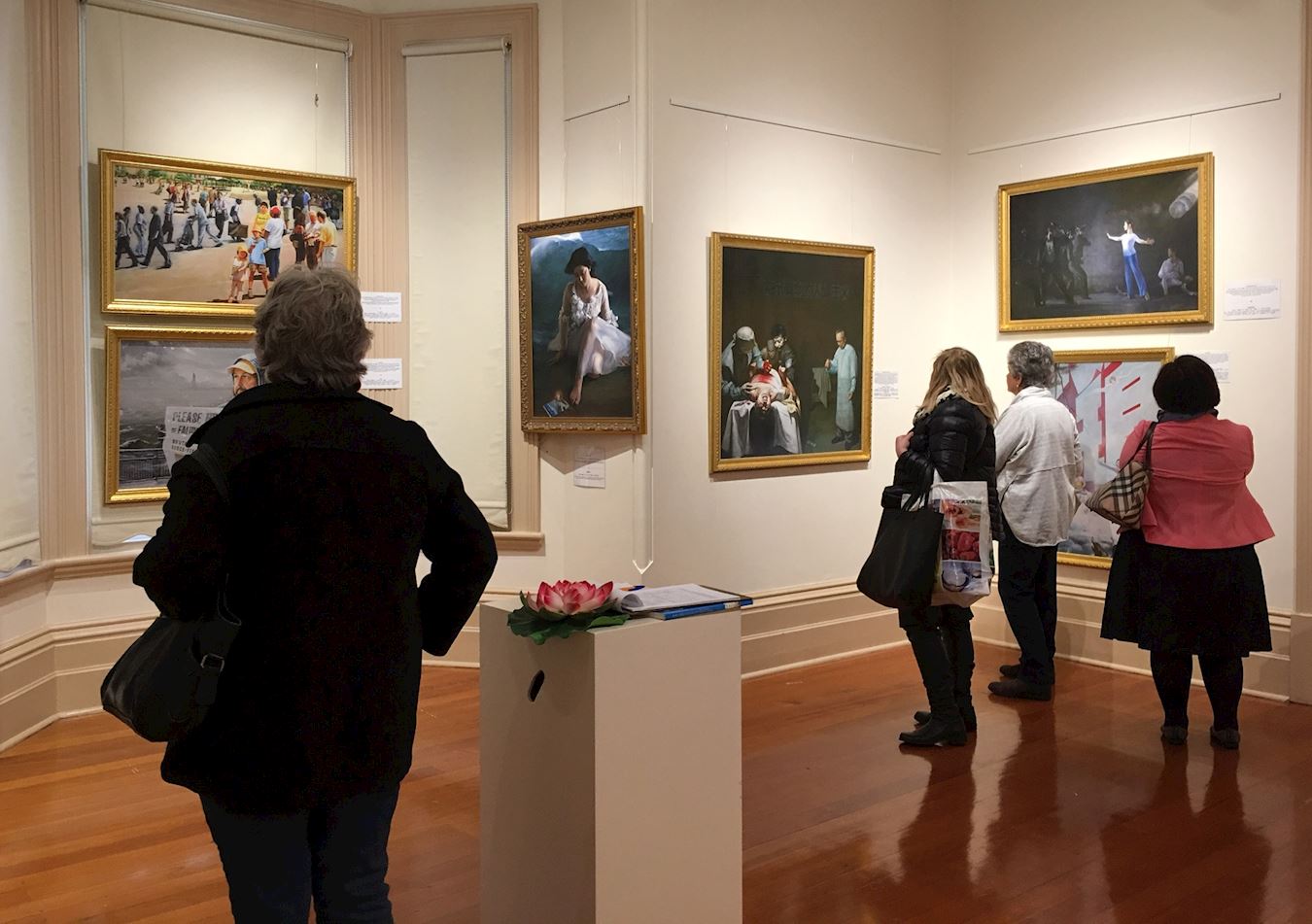 美展展出的作品是由修炼法轮功的中西艺术家们历年来创作的经典作品。自从2004年在美国国会雷本大厦(Rayburn House Office Building)首展以来,“真善忍国际美展”巡回全球四十多个国家和二百多个城市。本次美展主办方负责人张女士说:“这些作品以正统写实的绘画技法,表现修炼人的大善大忍,以及面对迫害,坚忍不屈,用生命实践‘真善忍’的历程。美展作品构图精美、独具巧思,采用高超的传统技法,展示了丰富的精神内涵。”