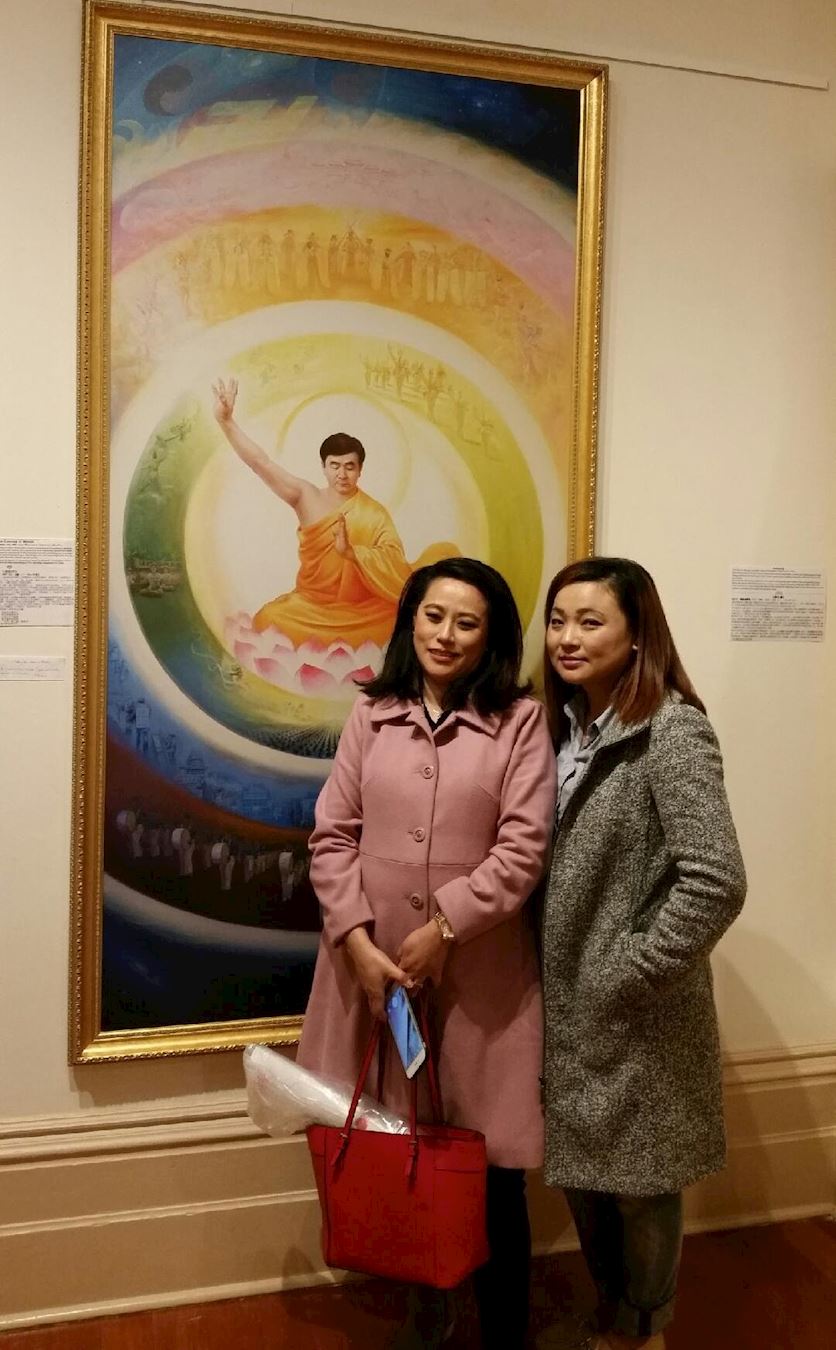 珊妮(Shannie)来自尼泊尔,她一进画廊,就感受到《佛像》这幅作品的慈悲和温暖,她说:“能量场非常强,我站在画厅的另一头也能感受到。”她仔细地观赏每一幅画,聆听导览的介绍。《孤儿泪》这幅画深深地打动了她,她说以前并没有听说过关于法轮功遭受的残酷迫害,认为中共的一切所作所为非常不可理喻,她会把真相告诉家人、朋友和其他认识的人。