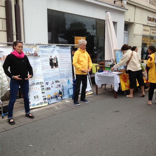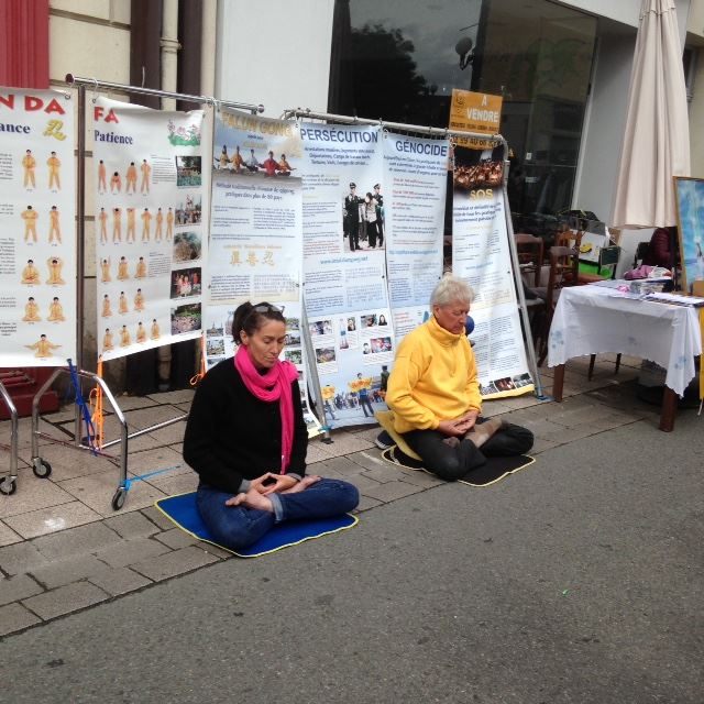 在法轮功学员做法轮功功法演示的同时,广播里介绍法轮功功法、历史以及洪传世界的盛况。很多民众得知学炼法轮功是免费时表示很吃惊,很多游客表示想要学炼法轮功,他们都索要炼功点的时间和地址,除了要圣马罗市的,还有要巴黎、里昂、南特、汉娜等地的。