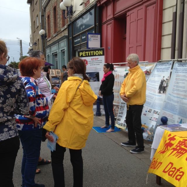 圣马罗是著名的旅游城市,这一天,不仅有很多的圣马罗居民见到了法轮功,还有很多来此度假的各地法国人。他们绝大多数都是第一次听说法轮功以及在中国修炼法轮功会遭受迫害,甚至被活体摘取器官。人们主动在征签表上签字,并表达他们的愤慨。
