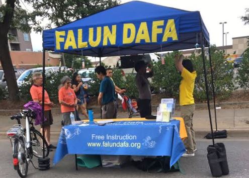 今年,二零一七年七月二十三日,明尼苏达州法轮大法协会也在“开放街道活动”设置展位。当天有许多族裔的市民对法轮大法的功法表现出浓厚的兴趣,不少人当场学功。