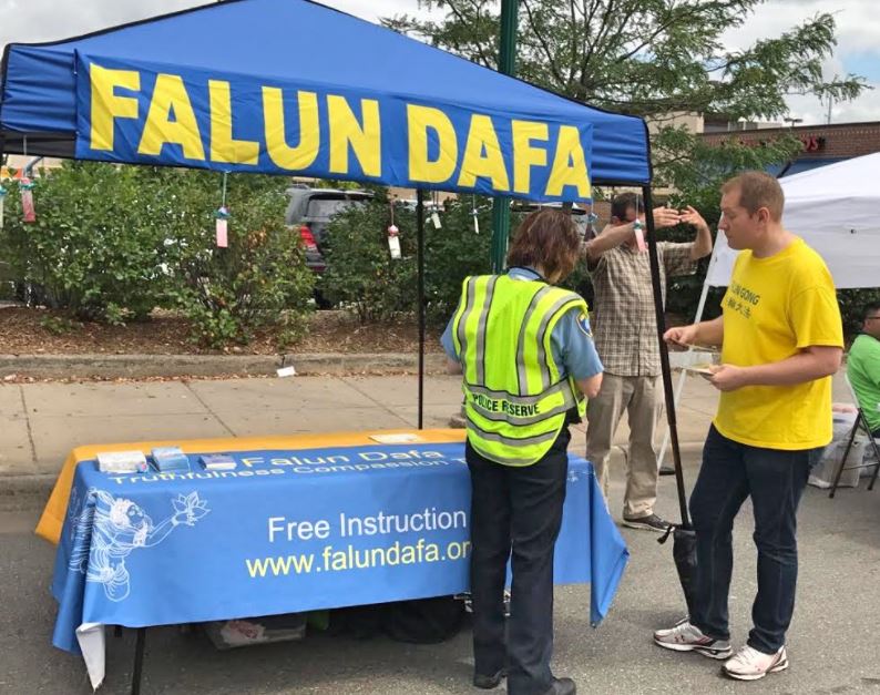 碰巧的是,与法轮大法摊位毗邻的是美国中西部一家颇具规模的非营利机构,致力于提供与人体器官与组织捐献及移植的相关服务,与数百家医院有合作关系。该组织的代表在与学员交谈后了解了器官活摘的真相,表露出不可置信的震惊,并留下了学员的联系方式,希望今后能够为传播器官活摘的真相提供协助。