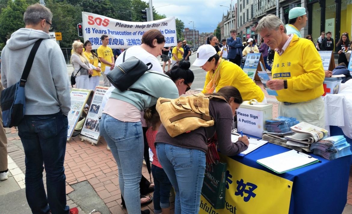 ![]() 图1~4:爱尔兰法轮功学员聚集在首都都柏林最繁华的商业街——格拉夫顿大街(Grafton Street),举行反迫害十八周年集会游行活动。 |