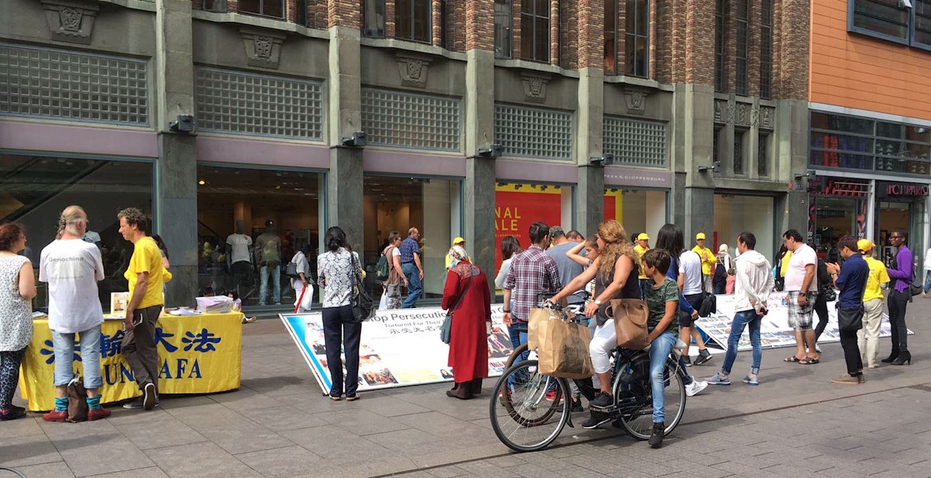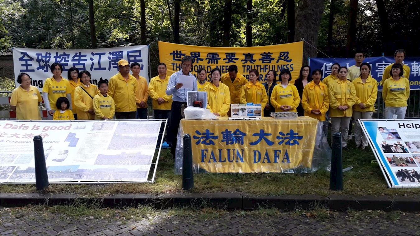 二零一七年七月二十日,荷兰法轮功学员在海牙举办活动,呼吁社会各界伸出援手,早日制止中共对法轮功的迫害。