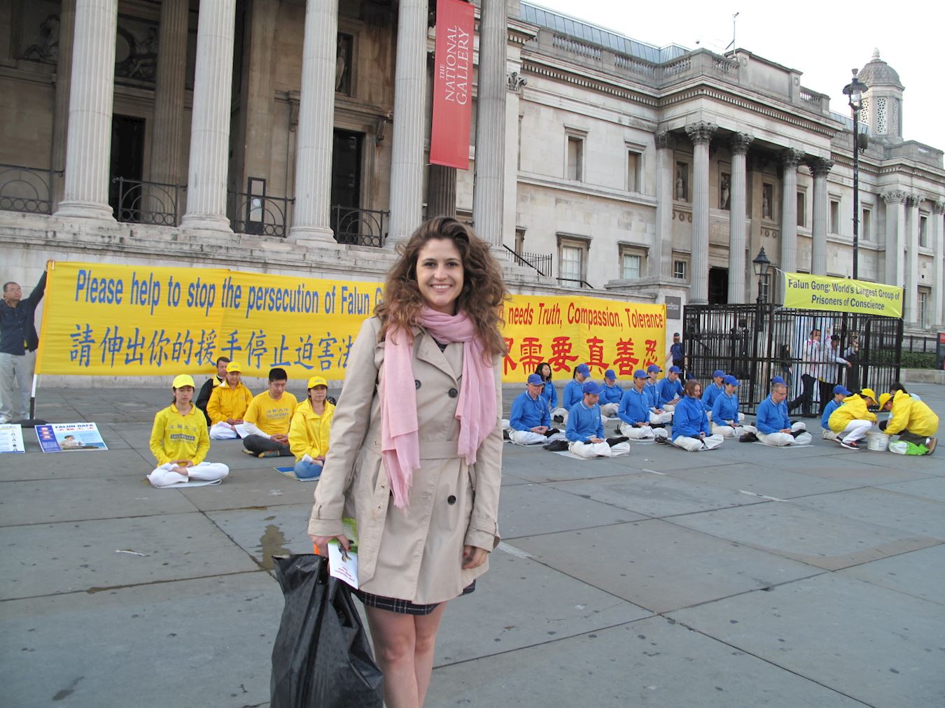 ![]() 图6:在伦敦工作的西班牙姑娘劳拉了解真相后表示支持法轮功学员反迫害。 |