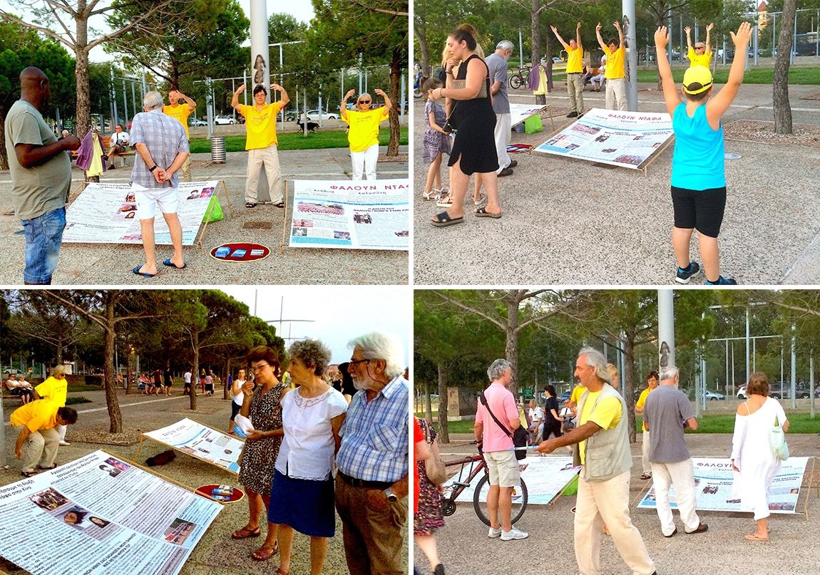 【明慧网二零一七年七月二十七日】二零一七年七月二十三日晚上,塞萨洛尼基部份学员们在海滨大道上向希腊民众介绍法轮功,并向过往行人讲述法轮大法在全世界传播的美好,呼吁人们共同携手制止中共对法轮功长达十八年的迫害。