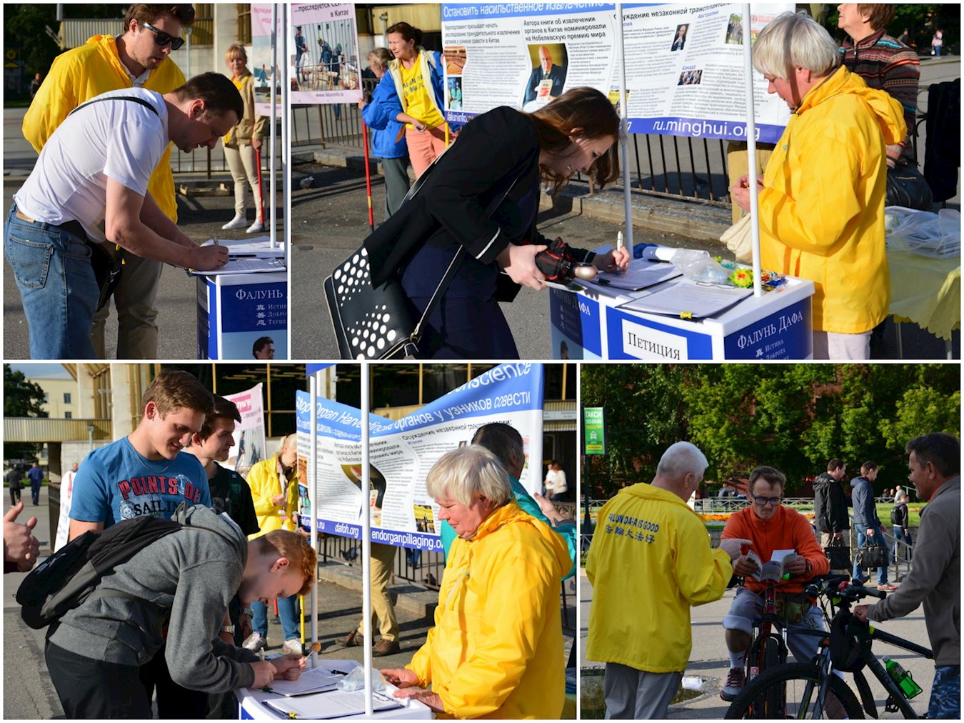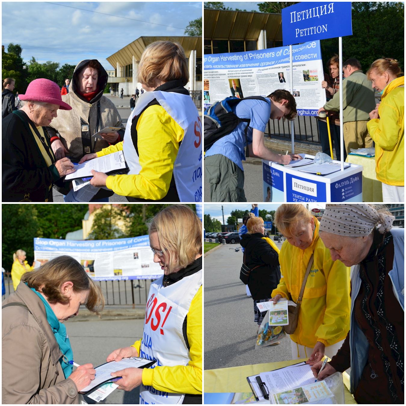 '图4~5:圣彼得堡学员举行弘法活动,人们签名支持反迫害'
