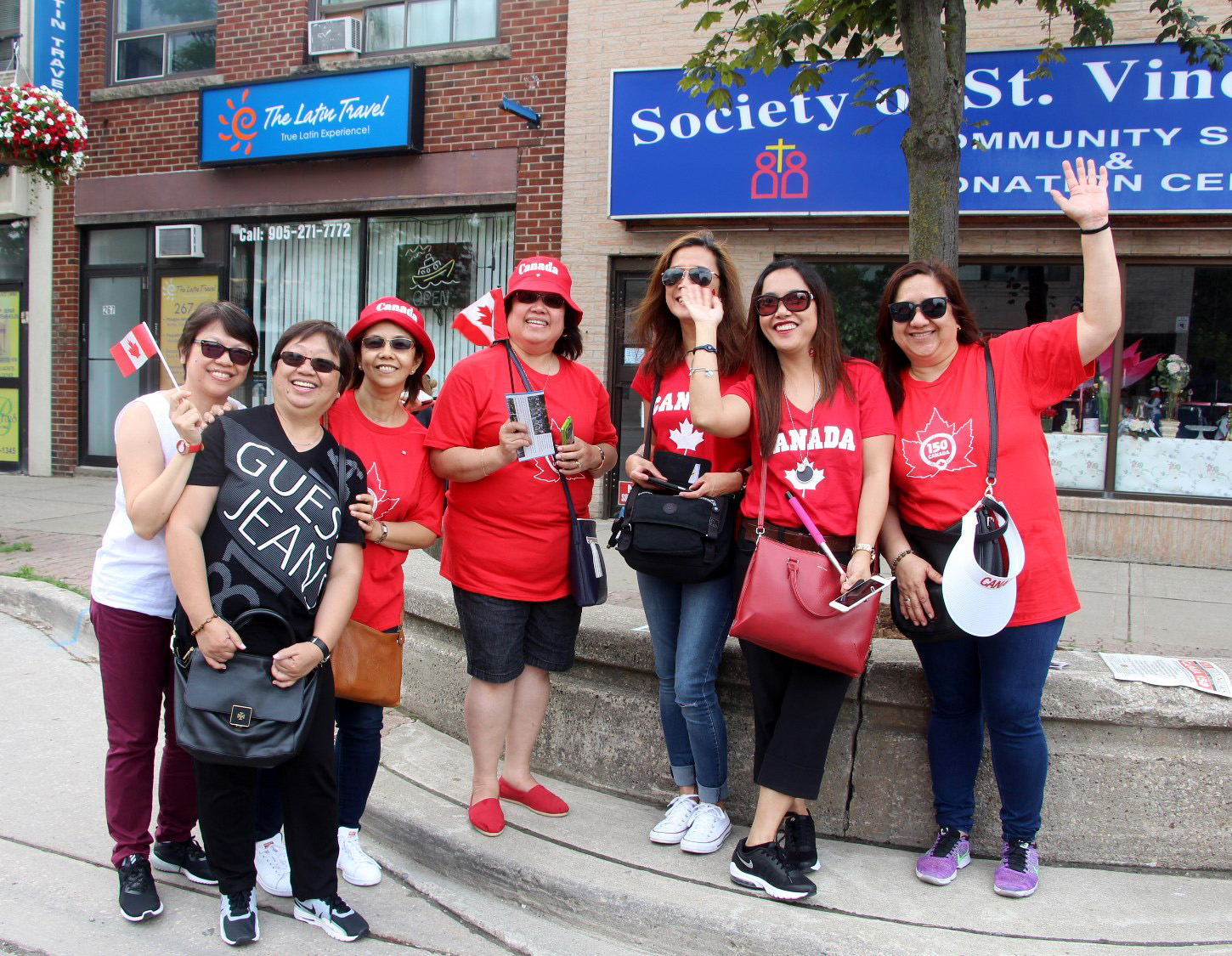 ![]() 图13: 菲律宾社区的人们拿着加拿大小国旗不停的给法轮功的队伍欢呼。 |