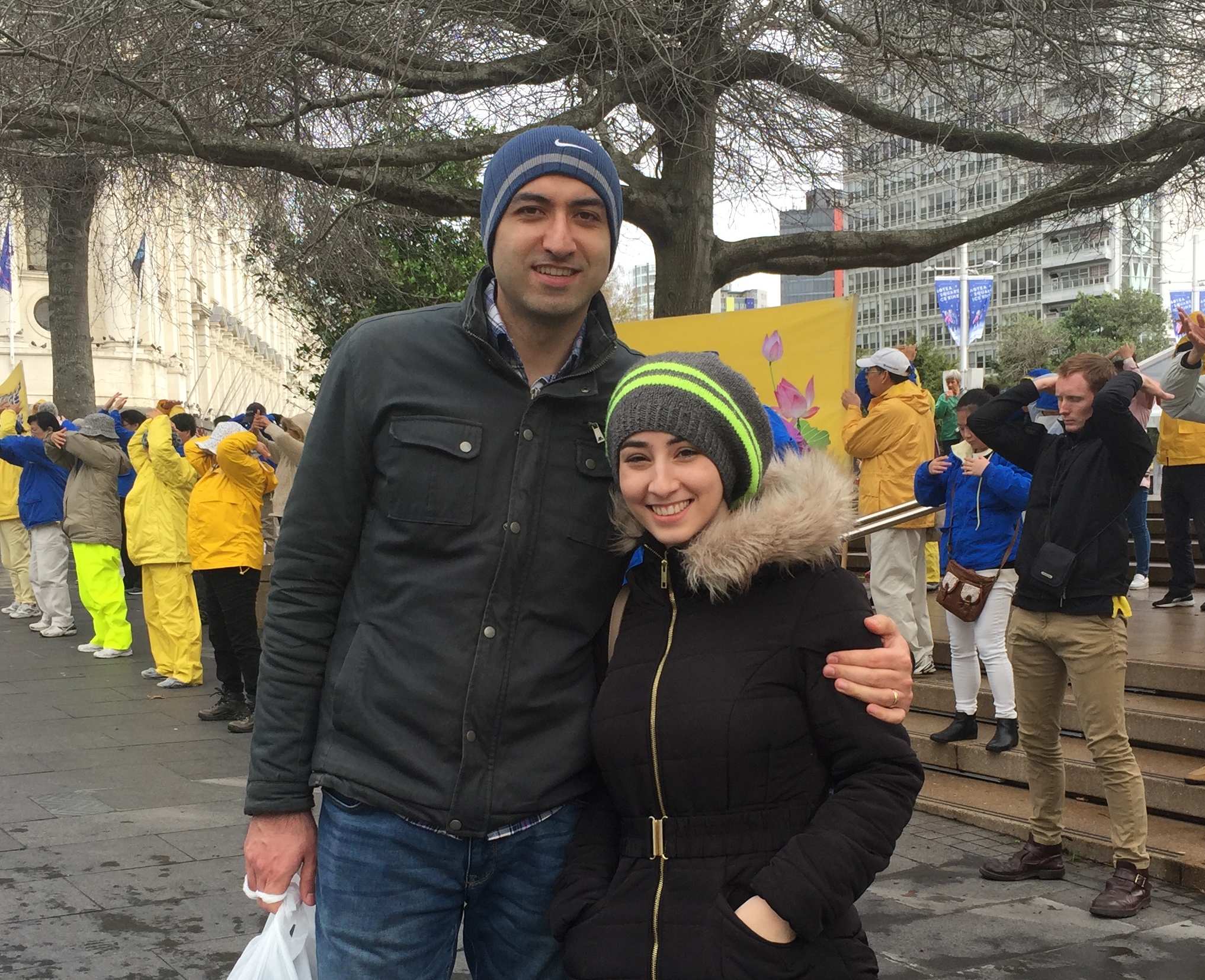 来自伊朗的Kheiri先生和Violet路过活动现场,驻足了解详情。Violet表示从来没听说过活摘器官这样的残忍罪行,她十分震惊。Kheiri先生说这令人很难过。他说他很喜欢中国人:“中国人很聪明,也很勤奋。终有一天他们(法轮功学员)会获得自由。”