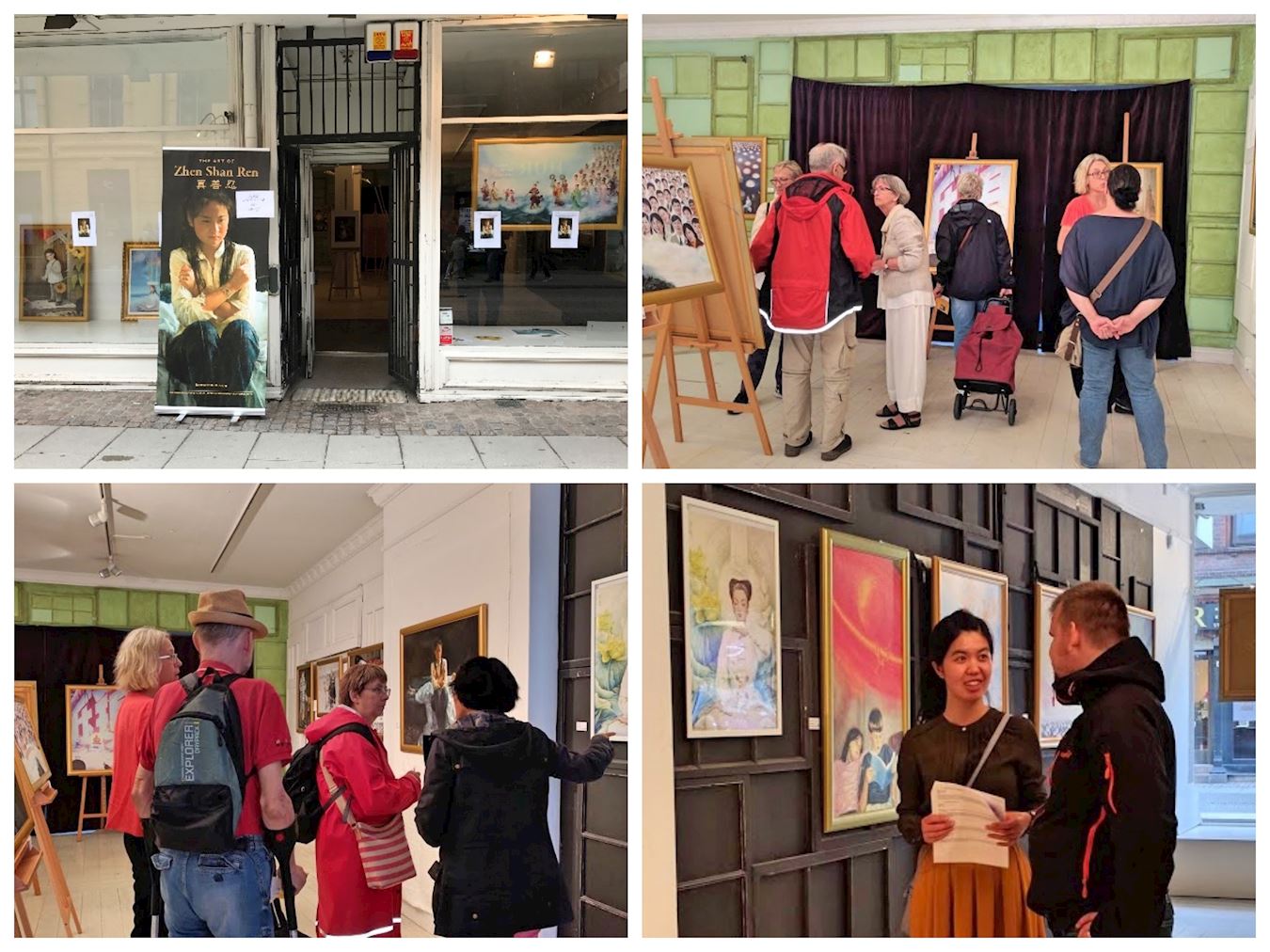 一位来自丹麦但已居住在瑞典多年的老先生曾经是一位记者,画展期间他在每幅画前驻足良久并仔细阅读画展导读中对每幅画的介绍。他提出了很多问题,并表示对中共迫害法轮功的所作所为无法理解。最后他说愿意帮助我们在媒体中曝光中共对法轮功的迫害。