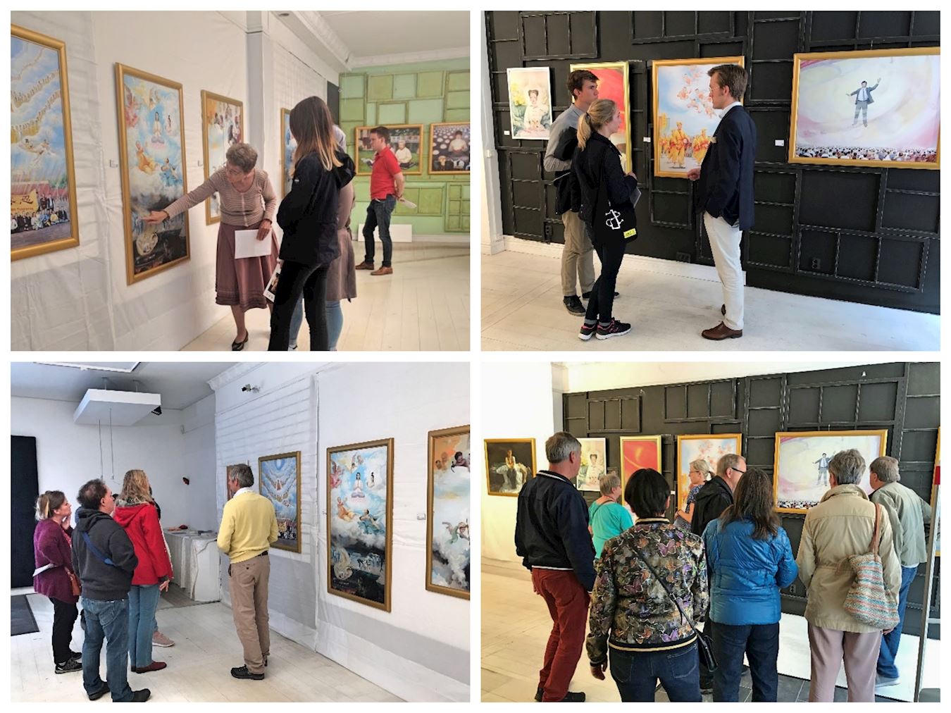 上图中的四位年轻人来自巴西,是新水手,第一次参加国际高桅帆船比赛。在休息期间在市中心偶遇画展。在讲解员的讲解过程中,他们一直彬彬有礼,并不时用巴西语愉快的交谈。当讲解员介绍到关于中共迫害法轮功为主题的画作时,他们突然都变得很安静并认真起来,期间的一些描述迫害的画作使他们震惊,其中一位男生用手捂着心脏处,表示惊讶。他们认真听了关于每幅画的讲解。最后他们与在中国经历过迫害的法轮功学员交谈后,一位男生说,我可以拥抱你吗?画展给他们留下的是深深的震撼和对法轮功学员反迫害的支持。