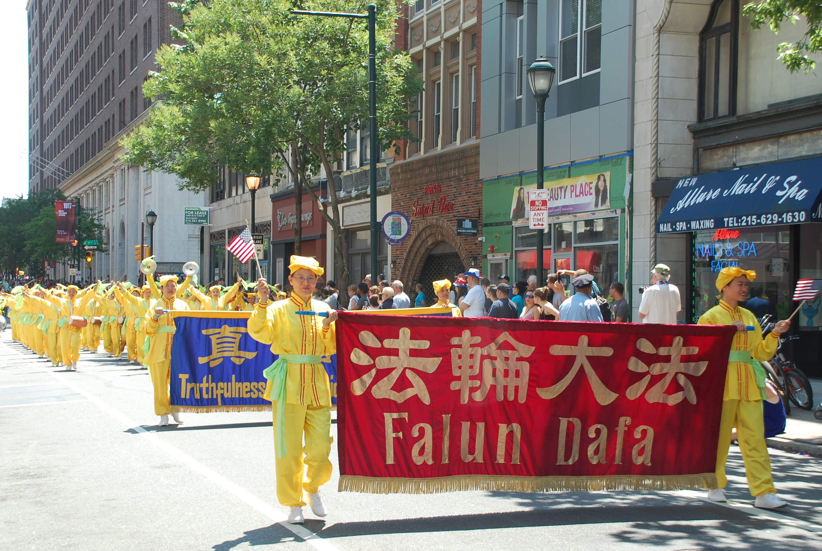 ![]() 图3:法轮功学员在费城独立日庆典活动中演示法轮功功法。 |