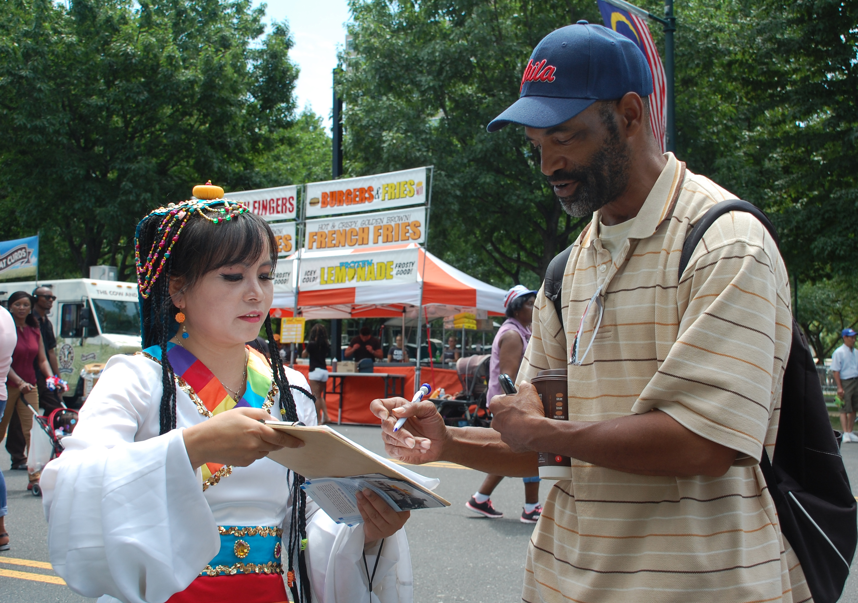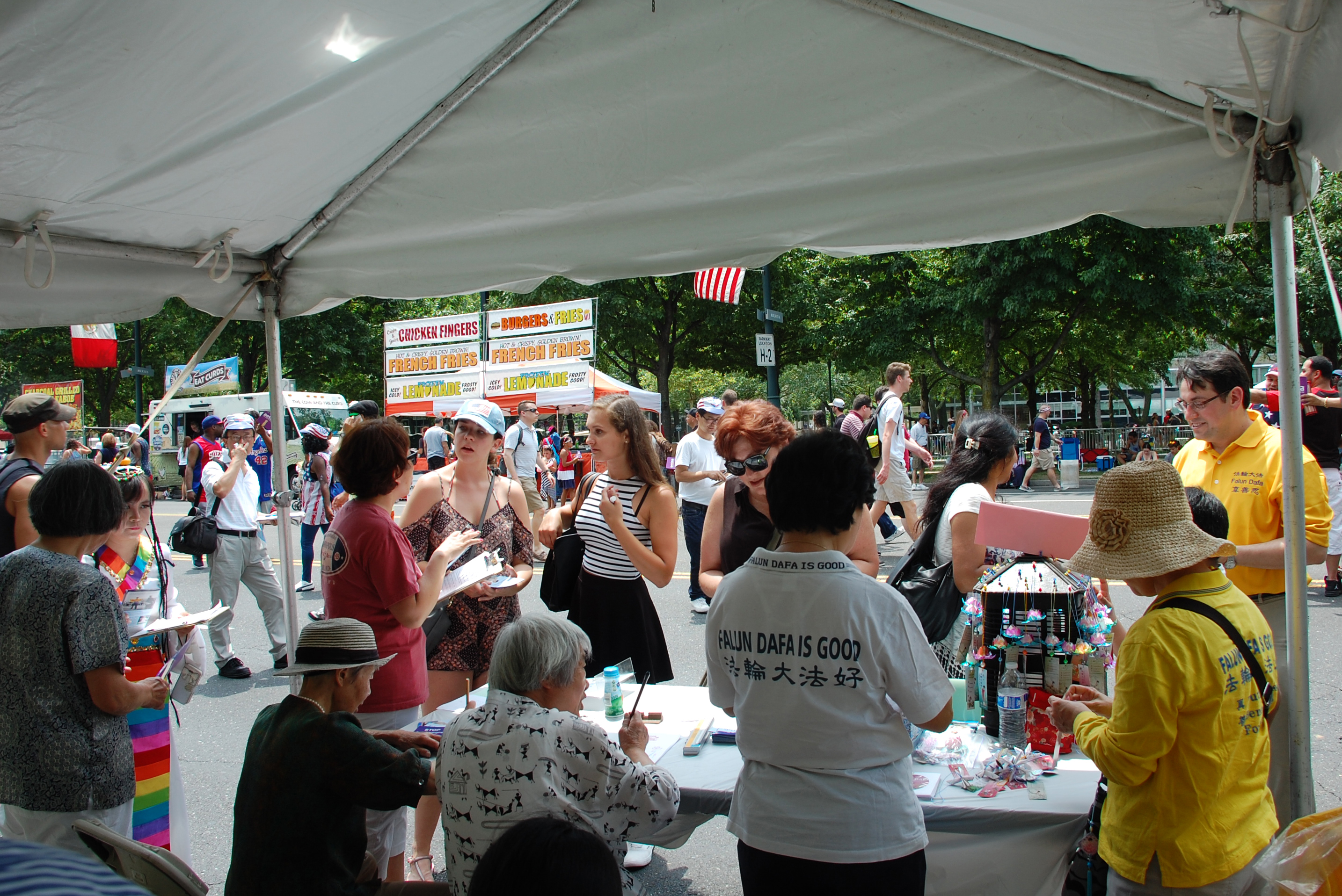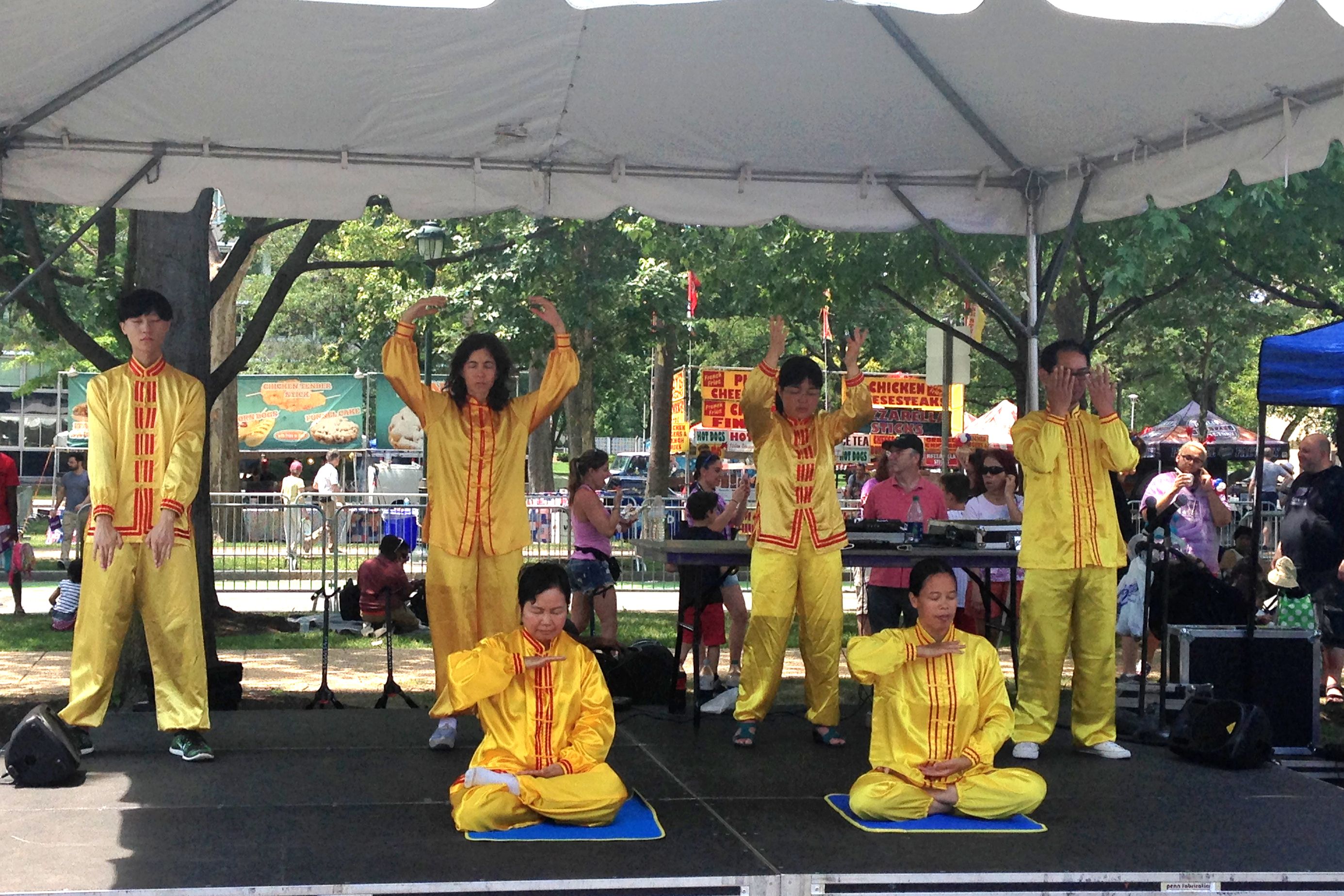 游行结束后,各种音乐舞蹈表演、娱乐活动以及众多商家的摊位展示旋即在本杰明·富兰克林大道开始。法轮功学员在舞台上表演了舞蹈和演唱大法弟子歌曲等文艺节目,还演示了法轮功功法。此外,法轮功学员还设有展位,展示中国书法,折莲花、向人们介绍法轮功,并进行反中共活摘器官的征签,让众多游人了解了真相。