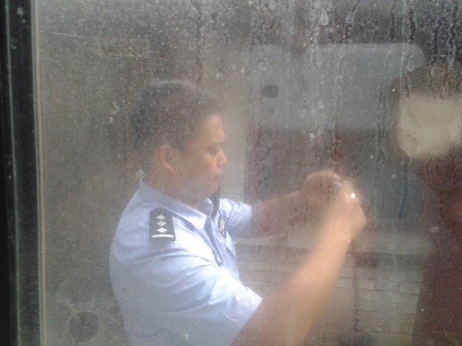 第二天上午9点多,一姓吴的警察又到潘志玉家,当时潘志玉在家带着口罩打扫卫生,警察对着她录像、拍照,潘志玉不配合,并义正词严的给他讲真相。他们的不法行为给潘志玉及