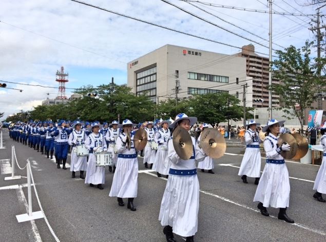 四日市是三重县人口最多的工业城市,有三十一万多人口。今年正值“第五十四届大四日市庆祝活动”,活动主办方向现场观众介绍:天国乐团的成员全部是由法轮功学员组成的,他们来自社会不同阶层和行业,积极参加社区活动。除了日本,在纽约、加拿大、韩国和台湾等地都有天国乐团。