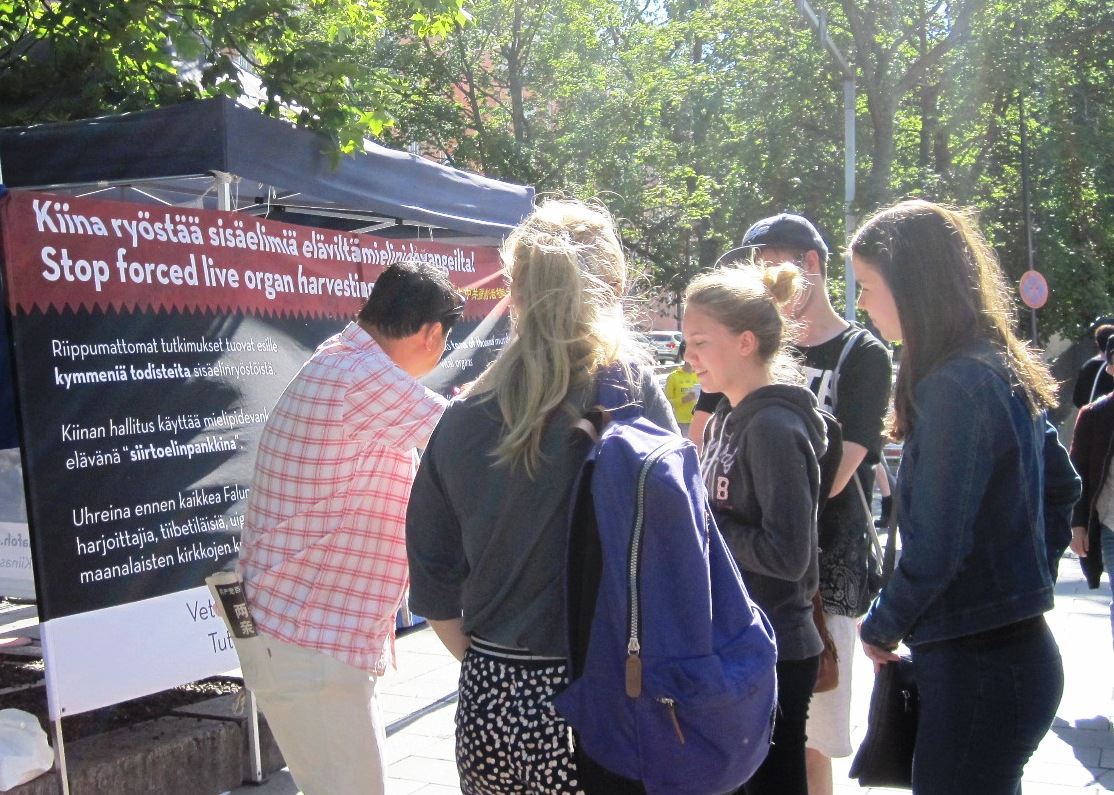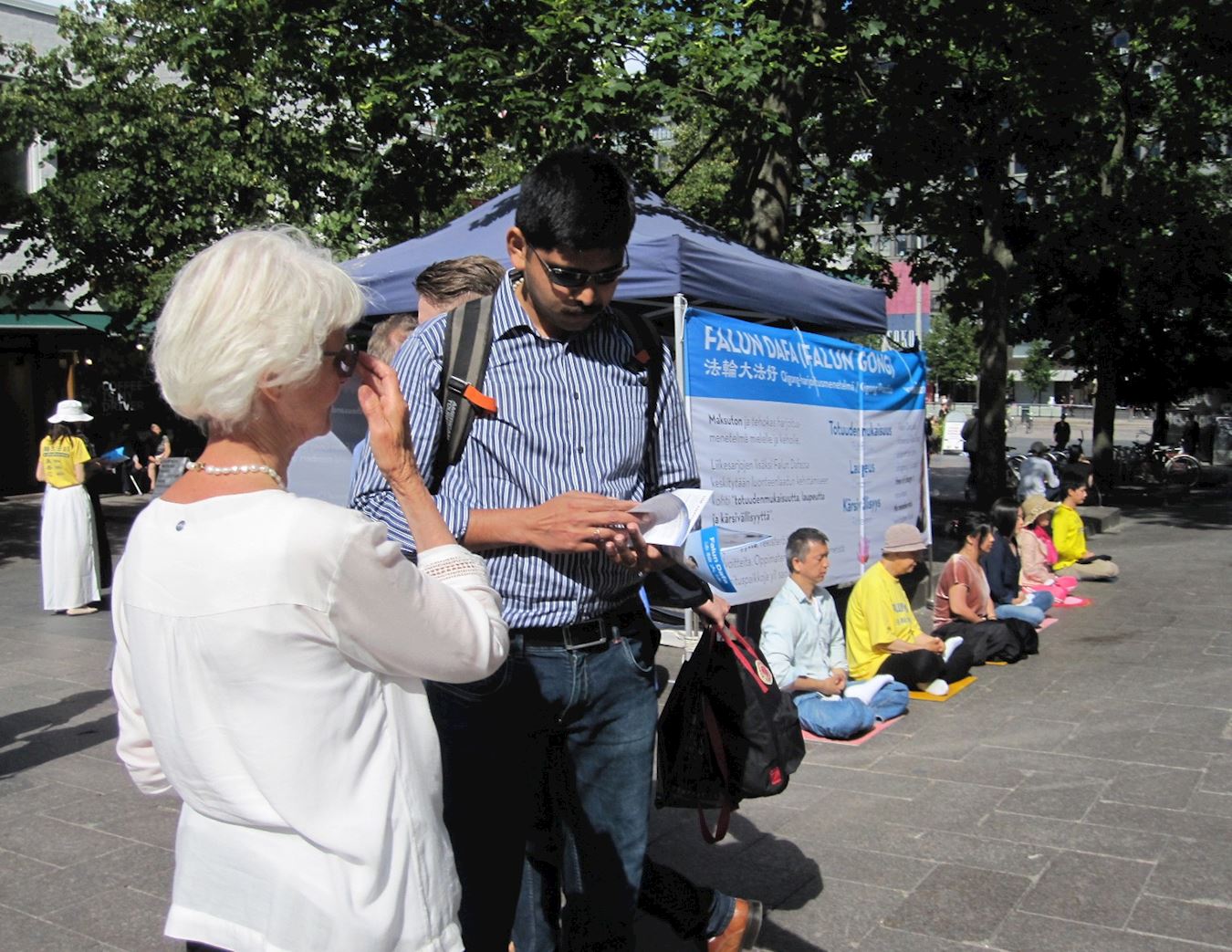 ![]() 图1~2:芬兰夏日游客很多,他们在法轮功信息日活动上了解功法和发生在中国的迫害 |