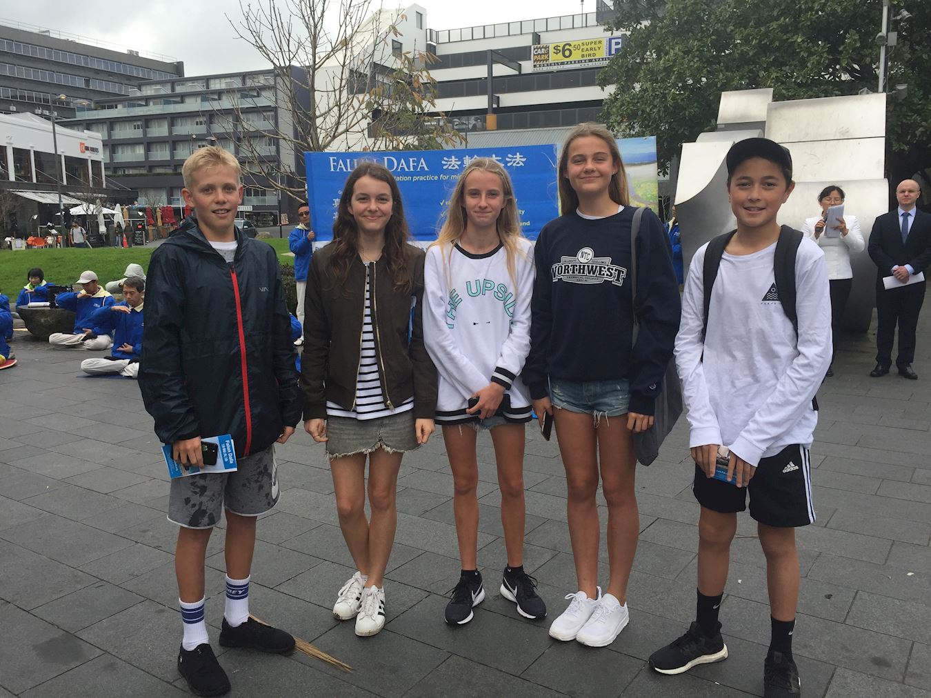 祥和的炼功场面吸引了行人想要加入,Poppy和她的小伙伴们表示很喜欢法轮功的优美平和,并和大家一起合影留念。不少华人明白法轮功真相和中共的邪恶后,退出了中共党团队组织,选择了美好光明的未来。