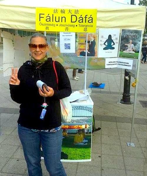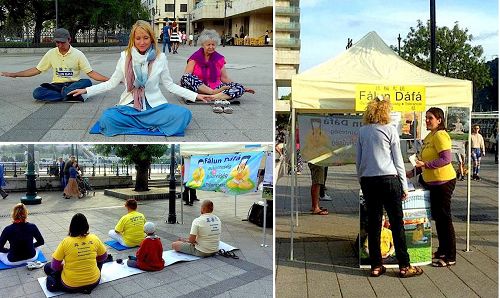 二零一七年七月二十日,匈牙利学员于法轮功反迫害十八周年之际,来到中共大使馆前和平静坐,谴责迫害,要求把迫害元凶江泽民绳之以法,立即停止迫害法轮功。第二天在市中心多瑙河旁举行了讲真相的活动,呼吁人们携手共同制止中共的暴行,停止迫害法轮功。