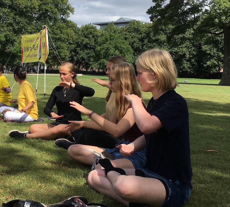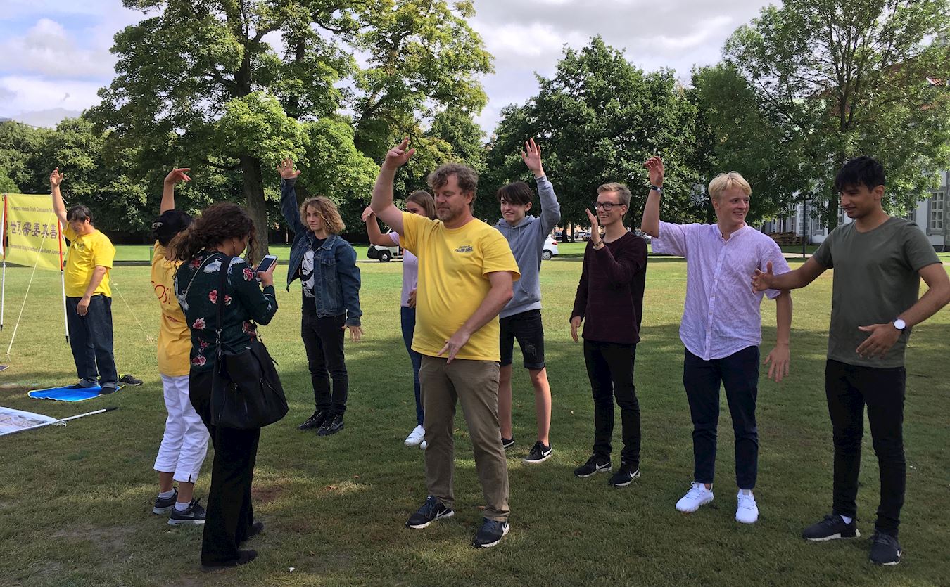 第三天学员们来到丹麦的第二大城市奥胡斯,上午炼功时有五个人前来学功。他们中有两位是从朋友那里得到信息,从另一个城市Silkeborg开车四十五分钟前来学功。还有一位是从奥尔堡健康博览会得到信息。大家学炼了前四套功法,并观看学员炼第五套功法。炼完功后,学功的Birgit表示:“很舒服,能量场很强”,Ditte说:“很放松,感觉到很和谐”。