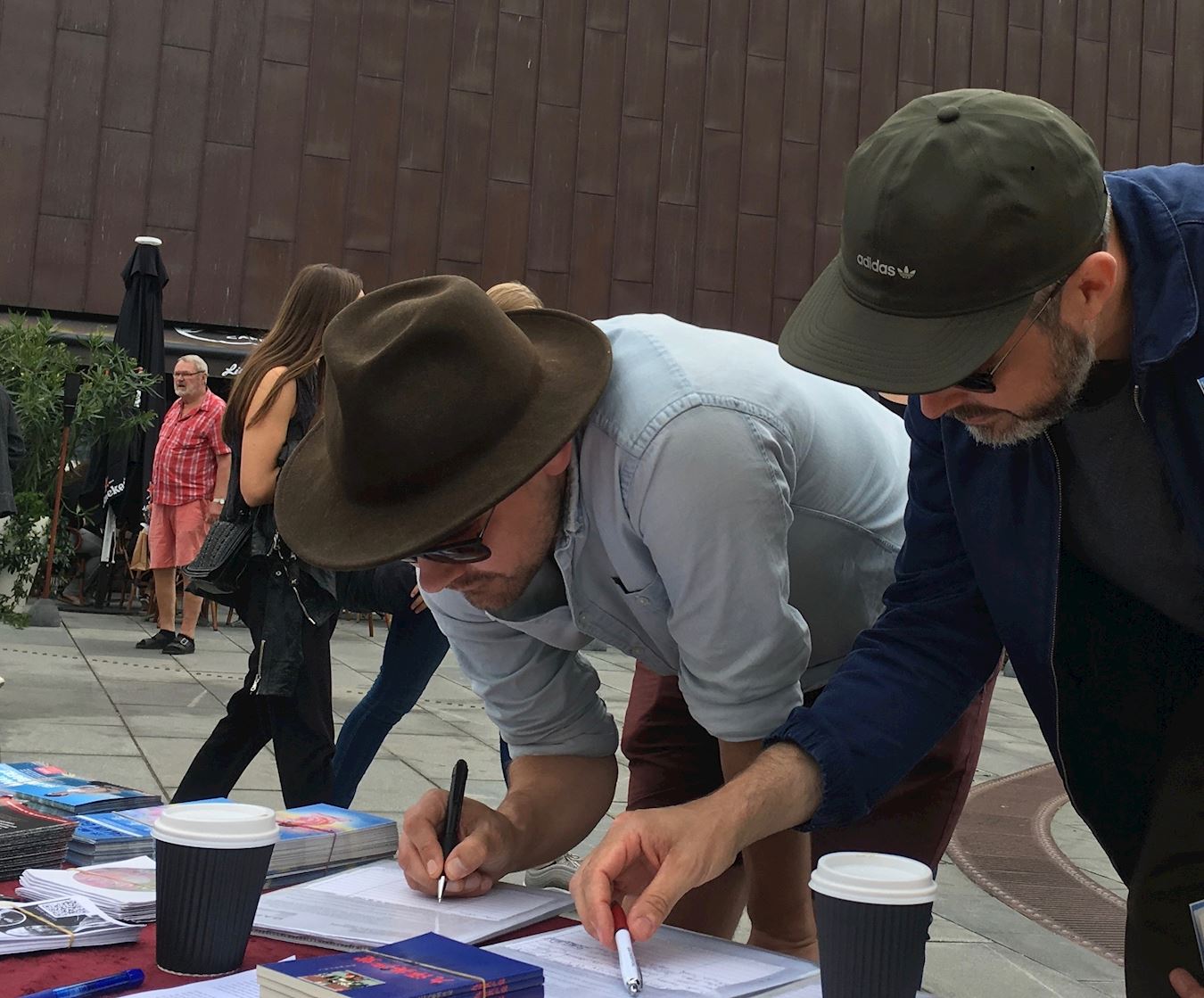 ![]() 图6~7:Vejle市的人们纷纷签名支持法轮功学员反迫害 |