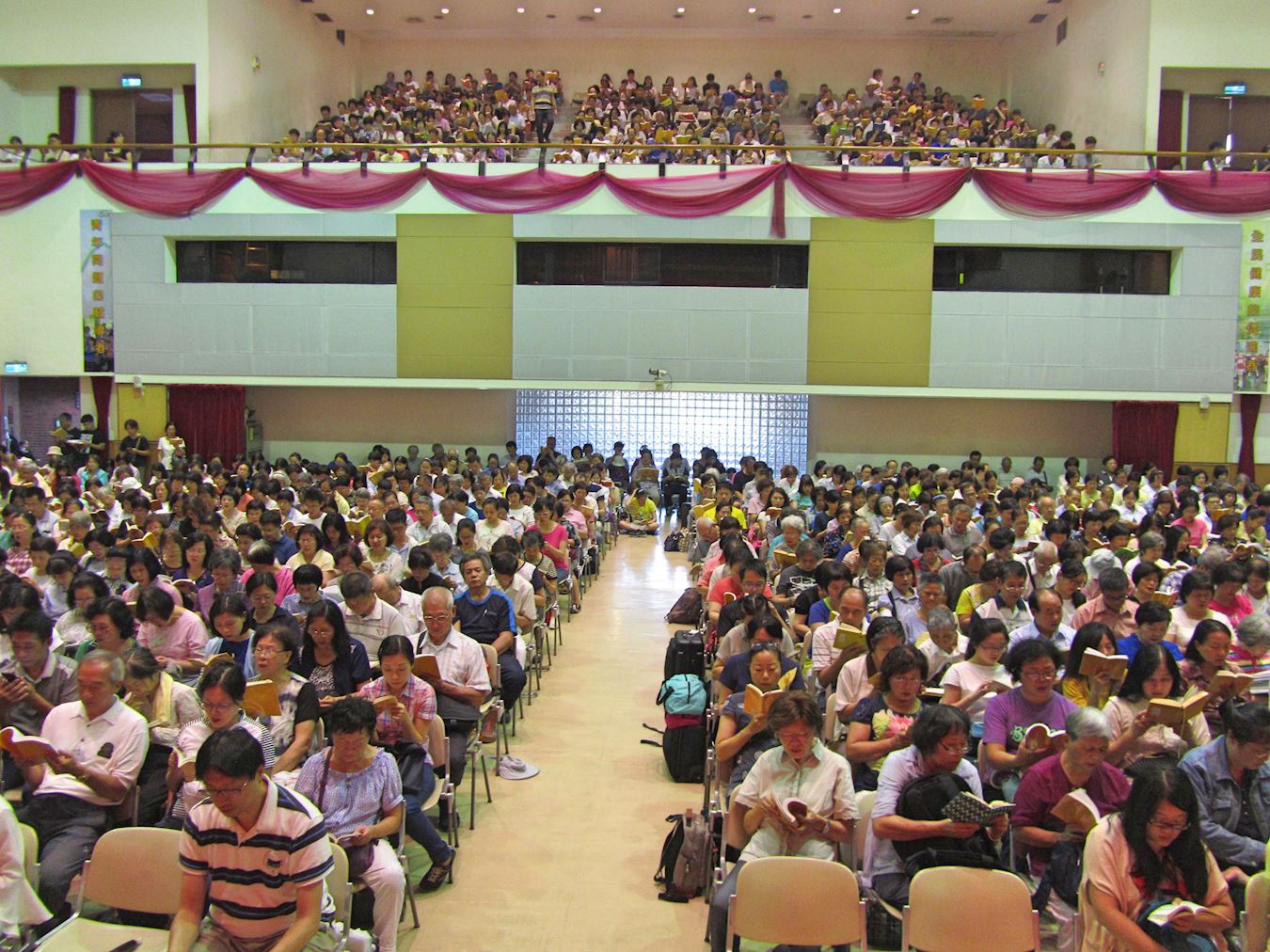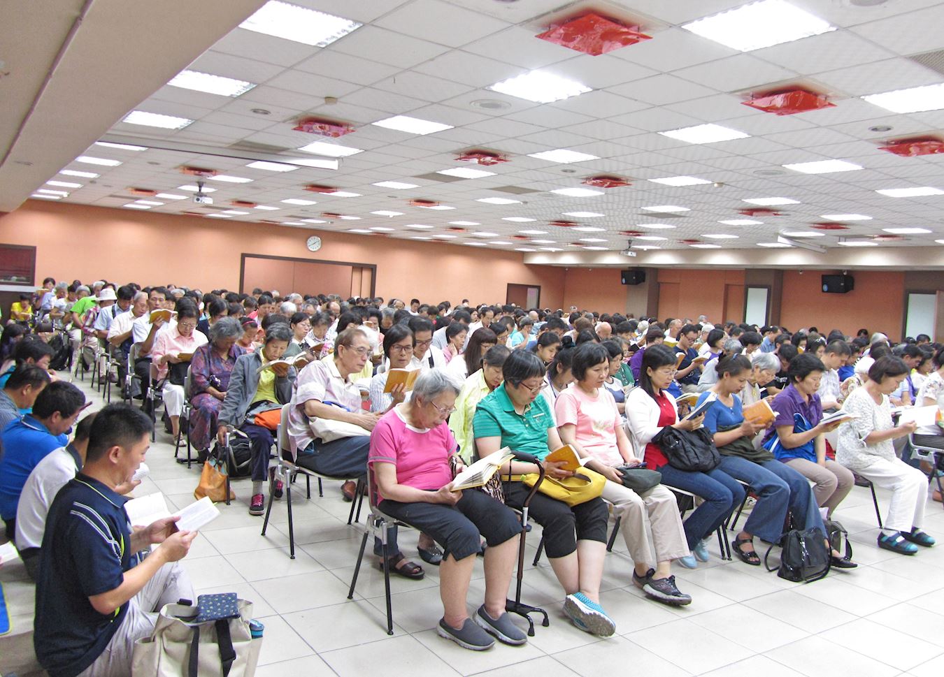 ![]() 图1~2:台湾北区一千七百多名法轮功学员在台北剑潭青年活动中心举行集体学法交流活动。 |