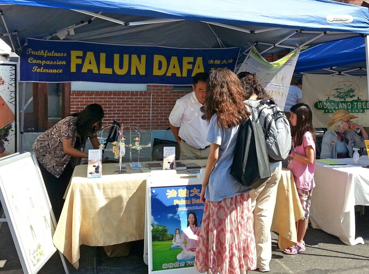 ![]() 图1:二零一七年八月十二日,沙加缅度法轮功学员再次应邀参加伍德兰市番茄节,来此设立大法真相展位,跟当地民众分享法轮大法的美好。 |